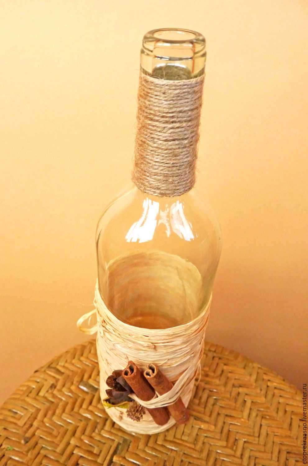 Option de décoration pour une bouteille en verre avec un chiffon