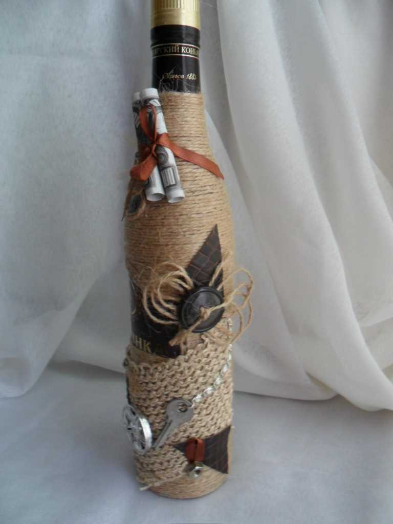 Les bouteilles enveloppées dans du tissu seront très belles