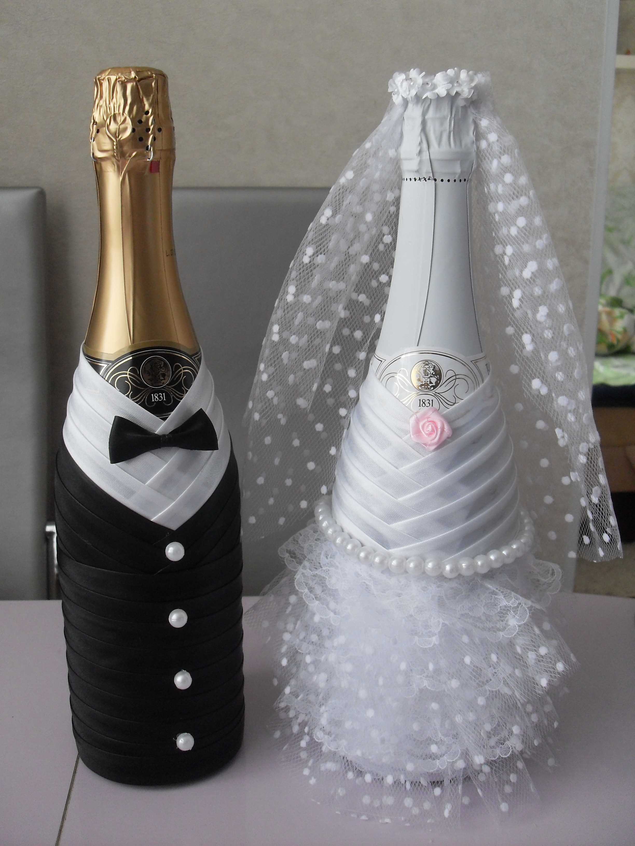 En utilisant des rubans de satin, vous pouvez décorer non seulement une bouteille inutile, mais également une boisson. Il peut s'agir d'un champagne de mariage ou simplement d'une décoration unique d'une table de fête. Une telle surprise inhabituelle est toujours un plaisir à faire pour les proches.