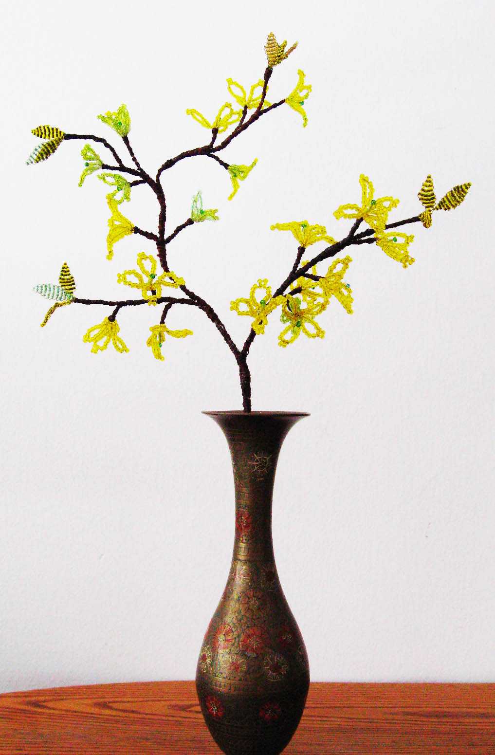 Les branches peuvent être décorées de petites fleurs et de perles
