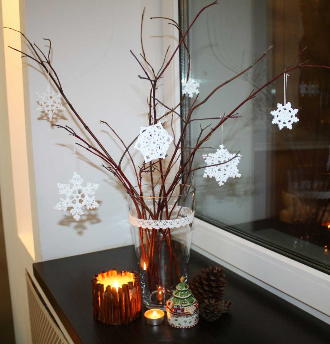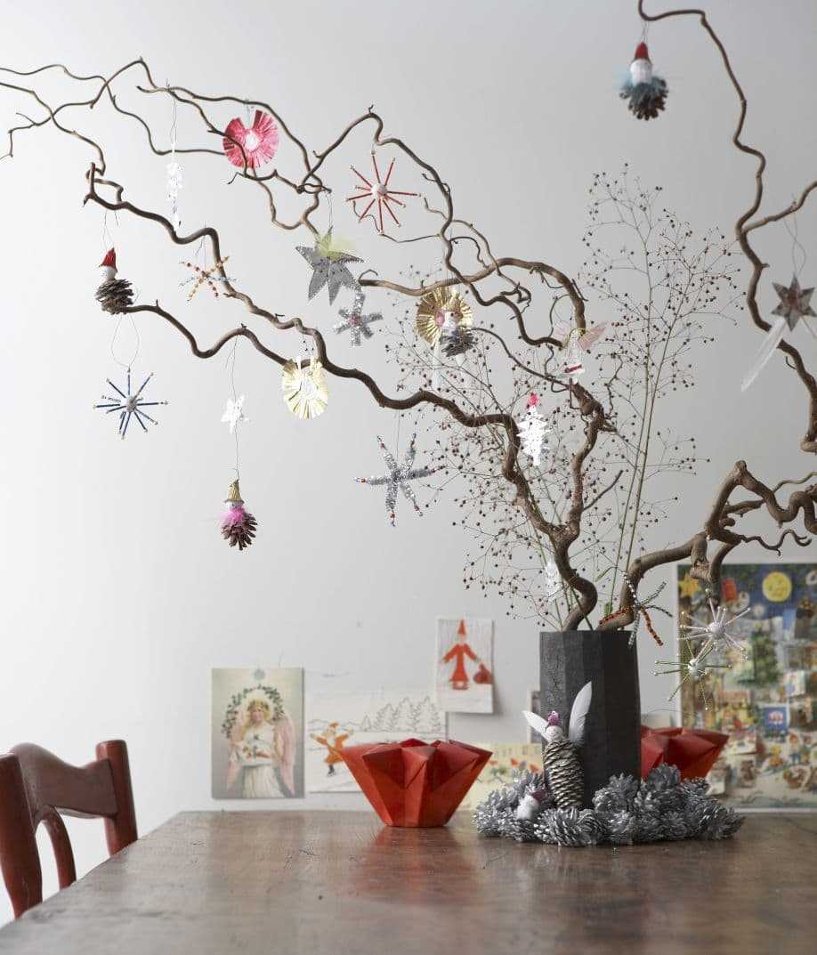 - Une grosse branche aura fière allure, imitant tout un arbre sec dans le coin de la pièce - fermement fixée, avec des pendentifs - personne ne pourra vous enlever l'unité avec la nature que vous gagnez avec un tel voisinage.
