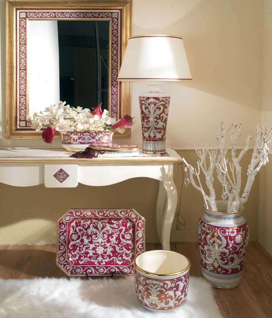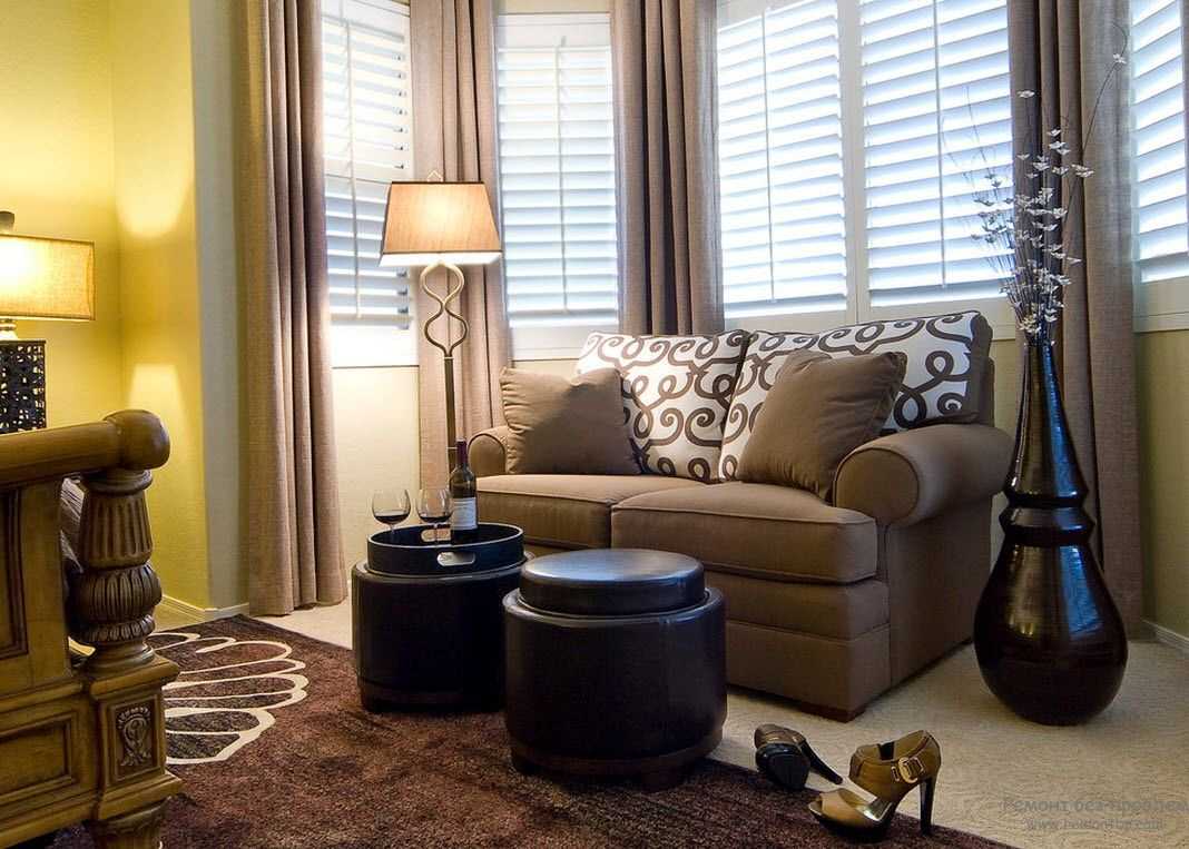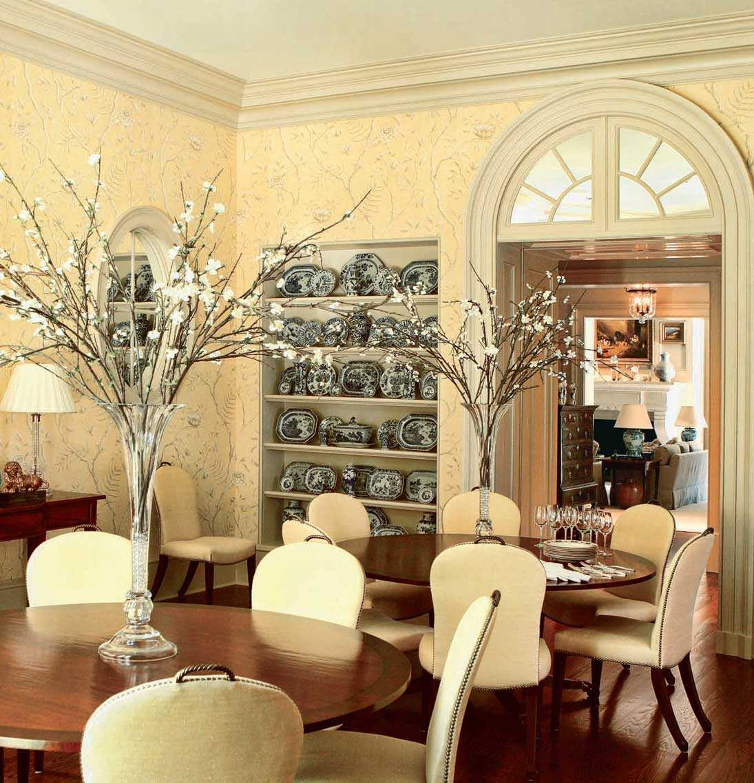 - Classique - entre les riches canapés sur le fond des papiers peints avec des lis royaux, un immense vase au sol avec un bouquet sec est élégant.