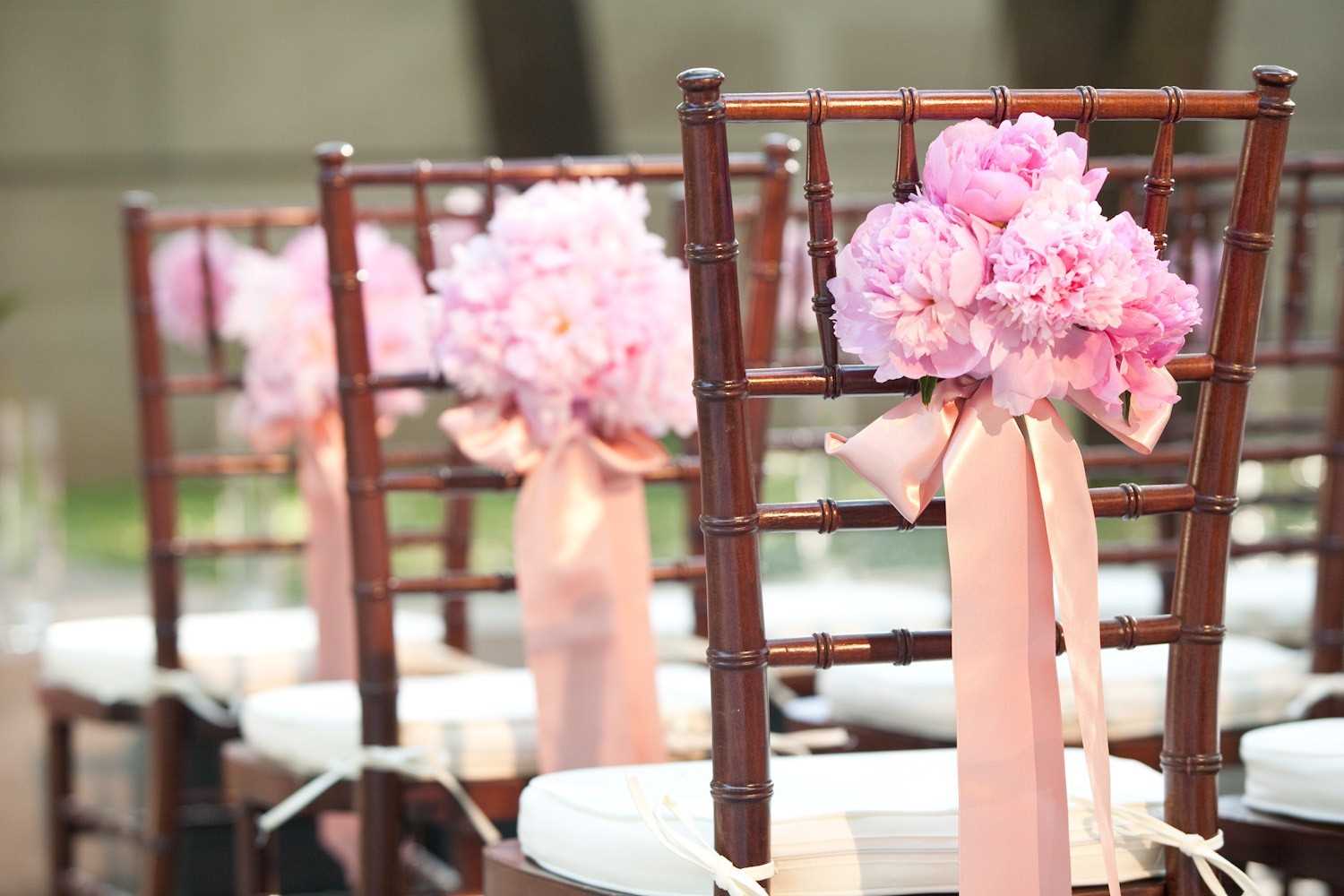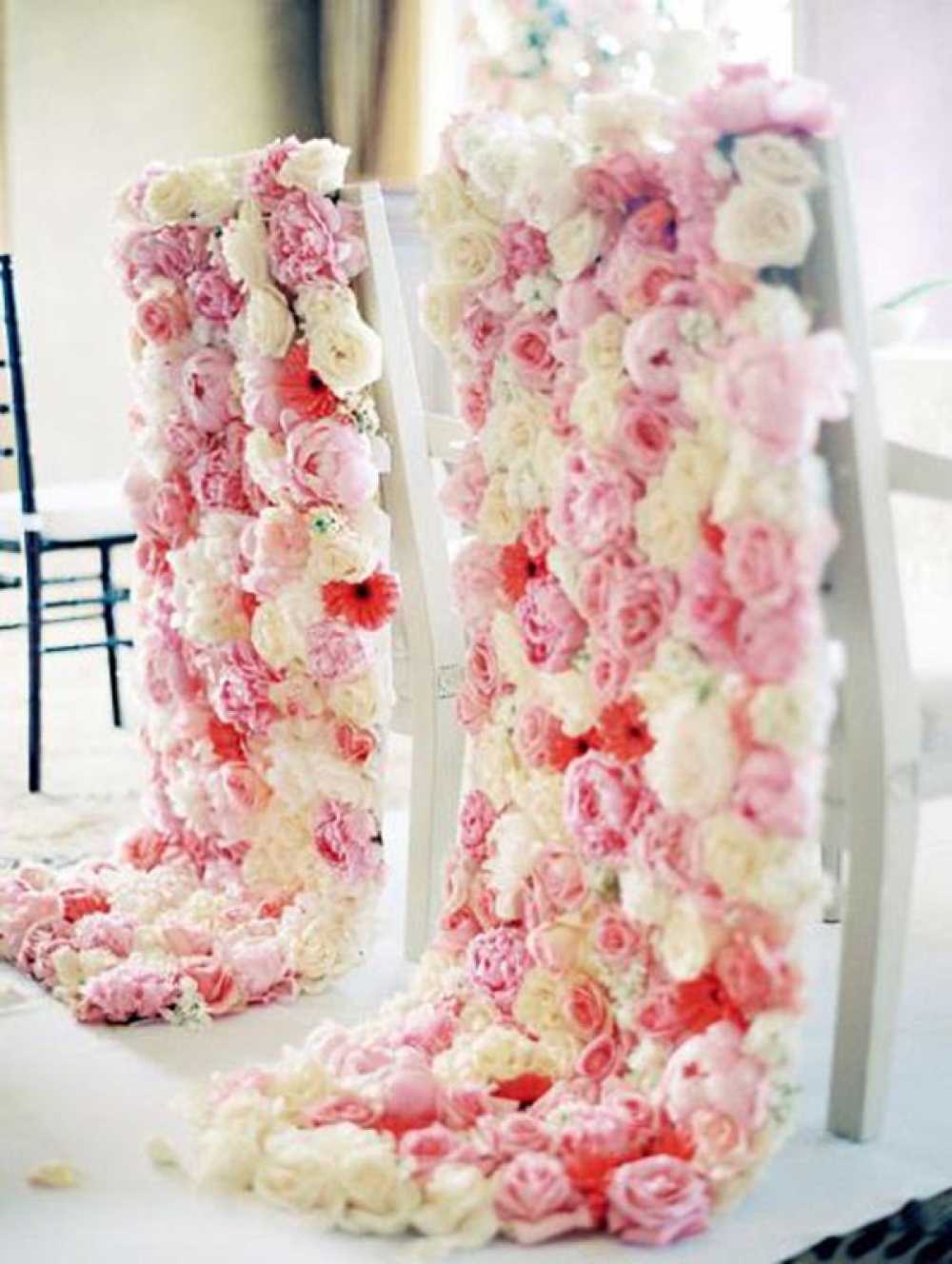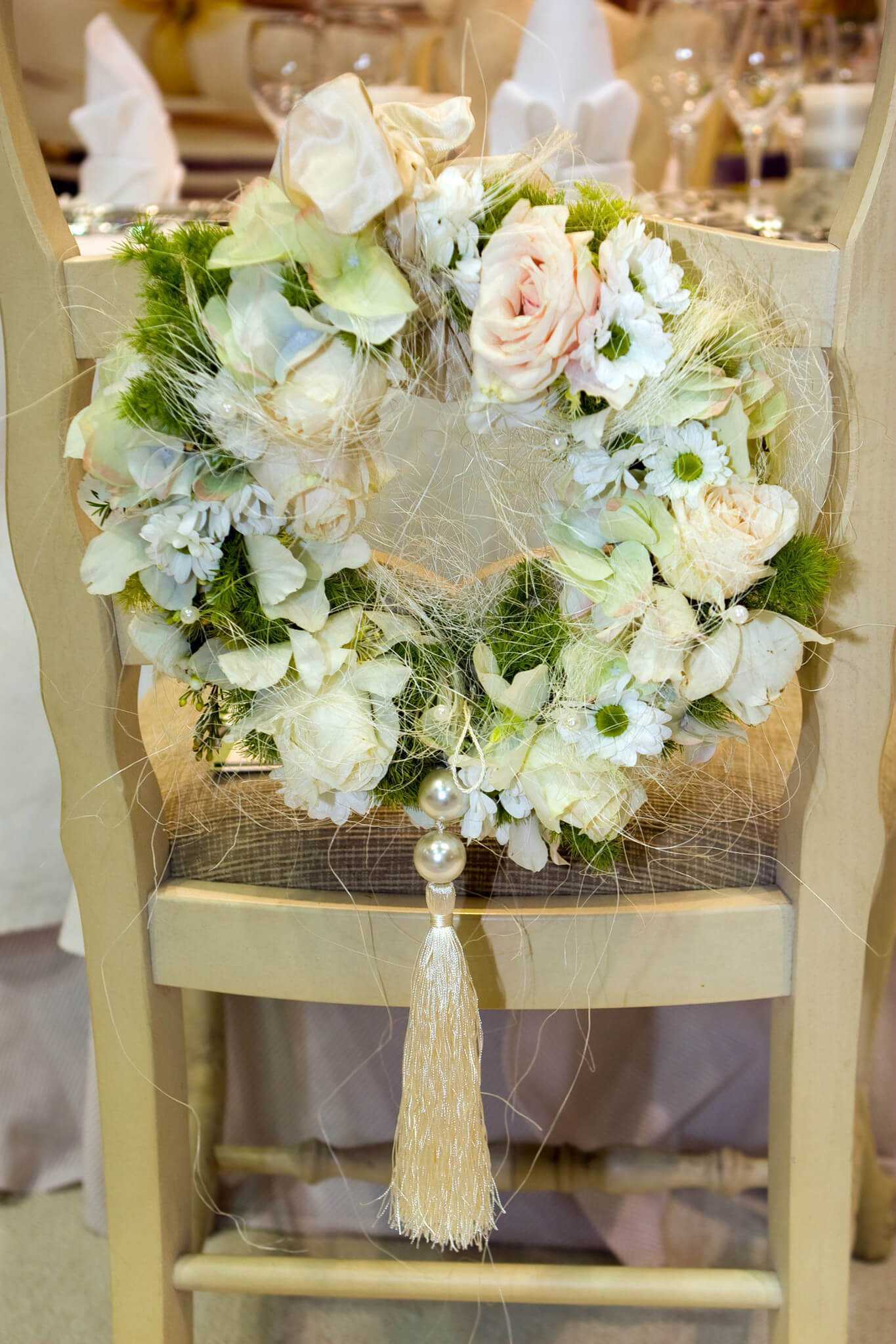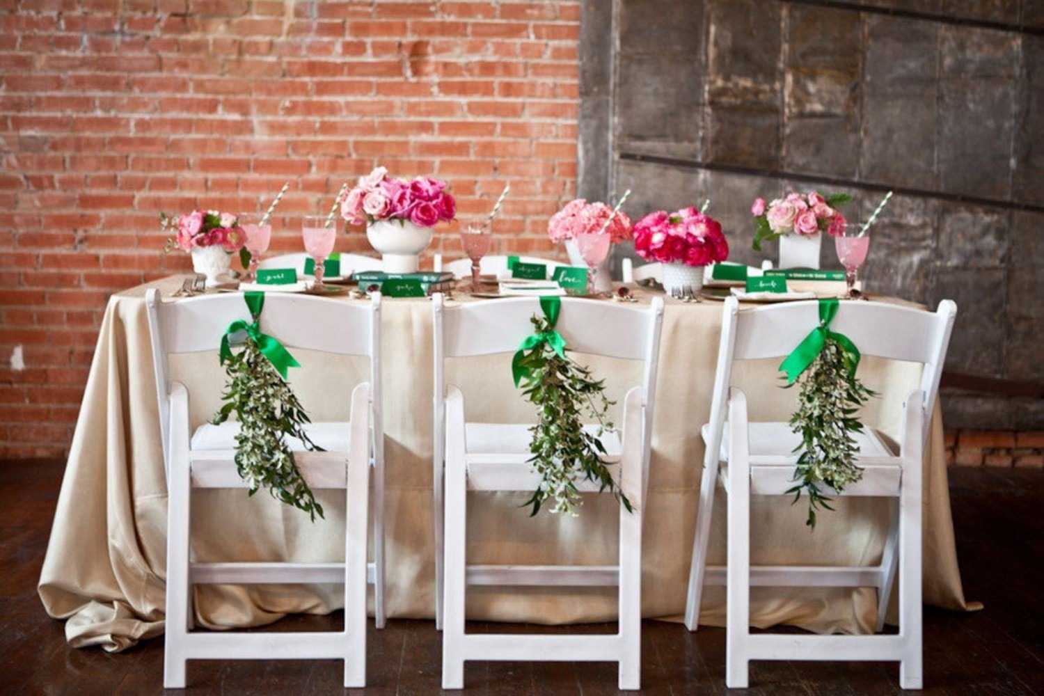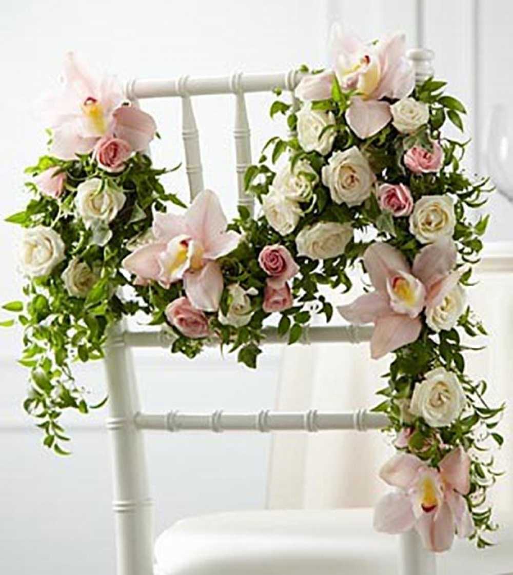 L'élément le plus commun pour ces vacances est des arcs et des fleurs. Les couvertures avec des noeuds de satin attachés à eux sont belles sur des chaises. Nous allons chercher des décorations en fonction du style du mariage.