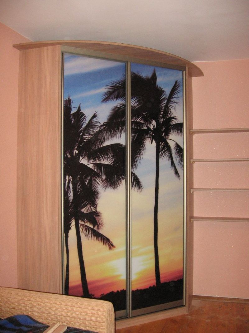 - Impression photo. Souvent effectué en collant des photographies de haute qualité imprimées sur un film vinyle adhésif sur une base de MDF. Bien que cela puisse être attribué aux armoires avec un design de façade en MDF, son aspect unique vous permet de le séparer dans une catégorie distincte.