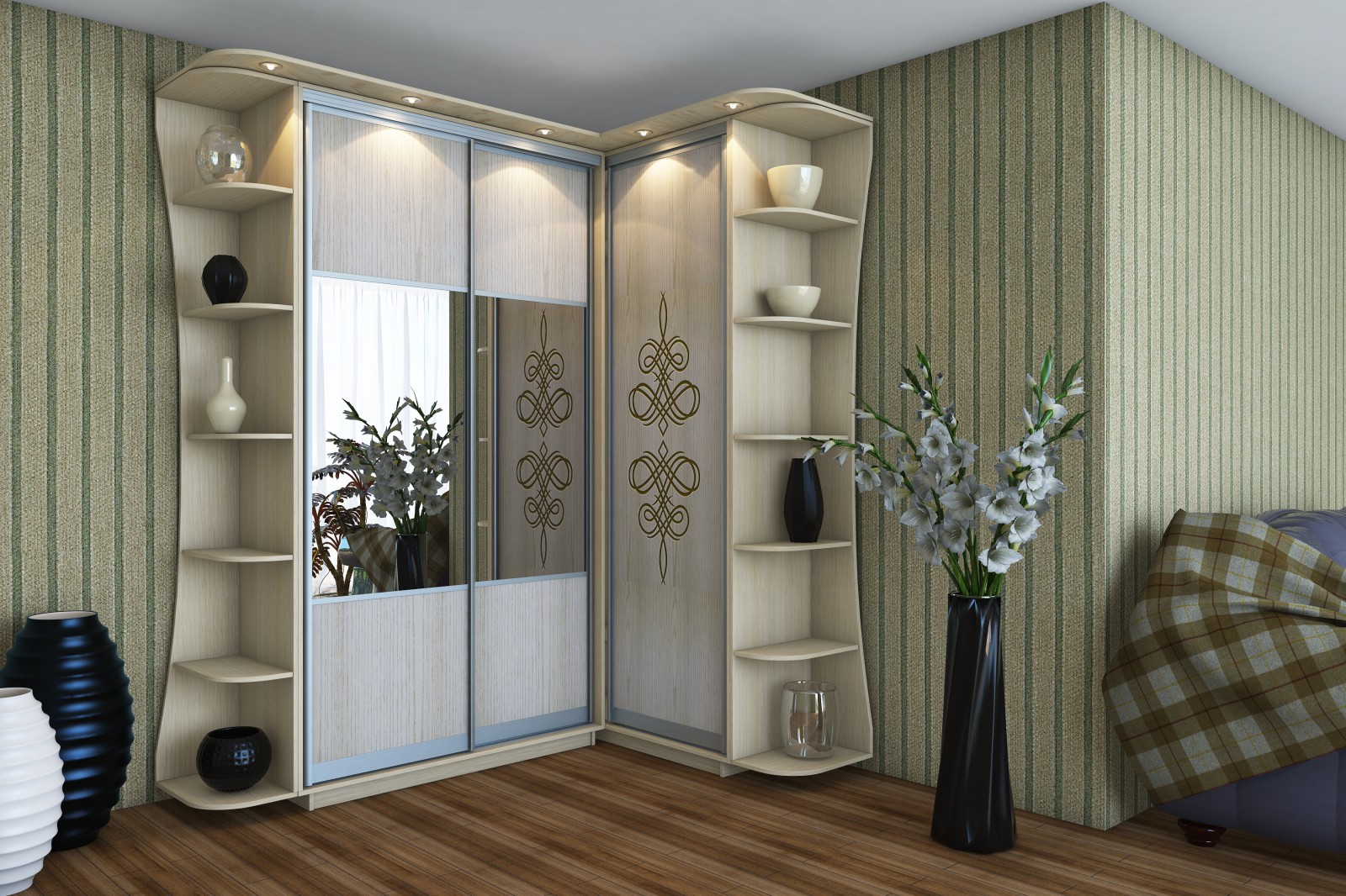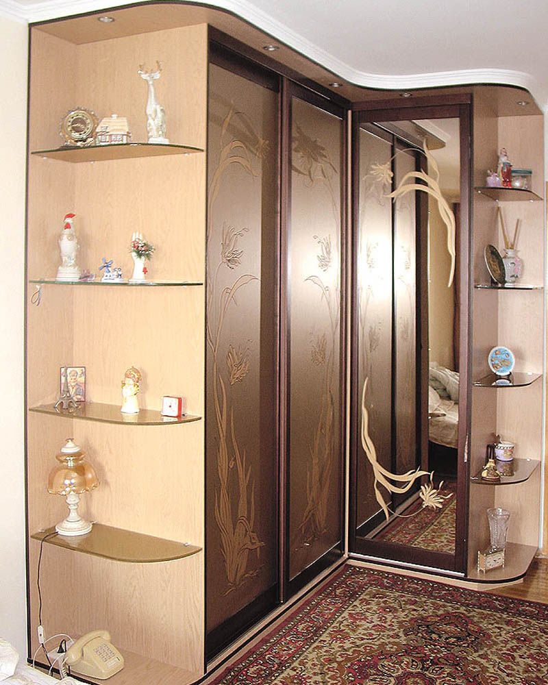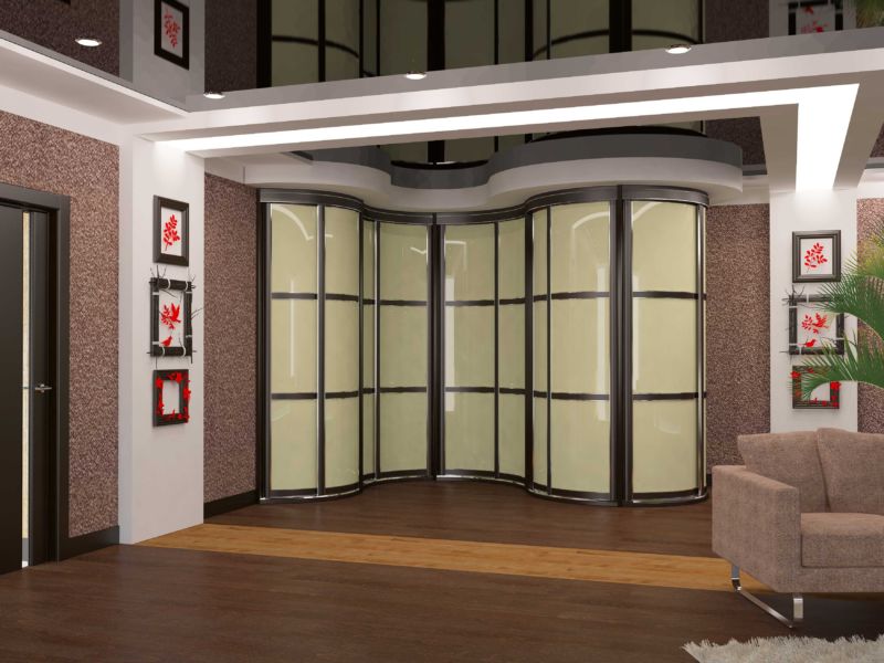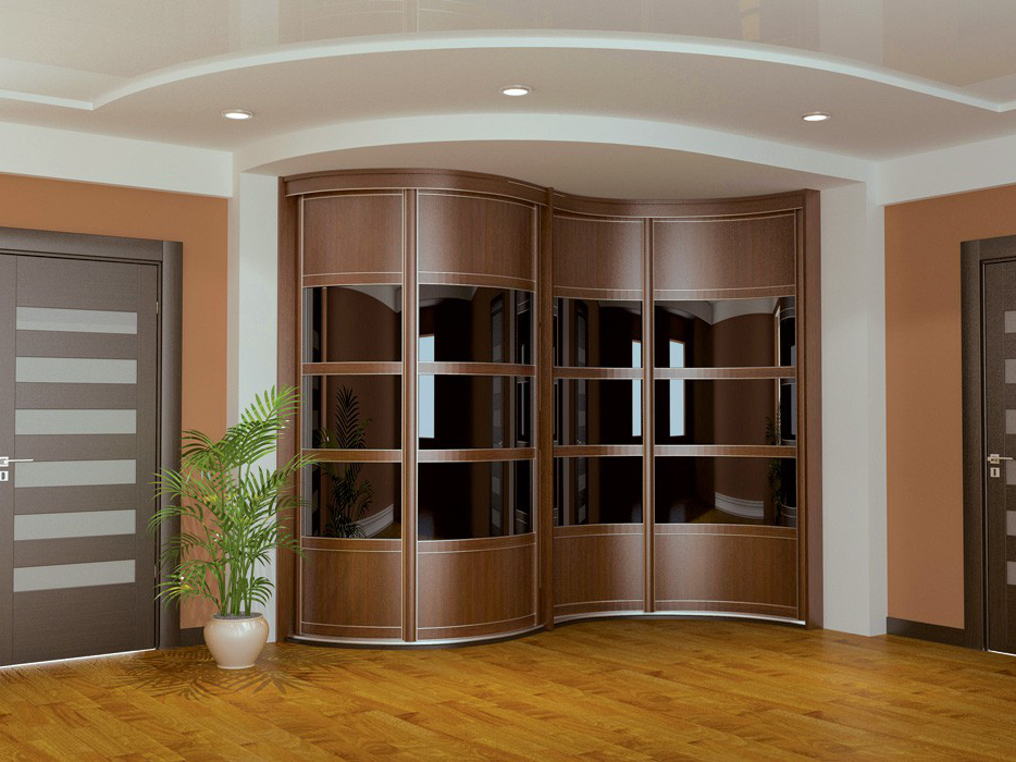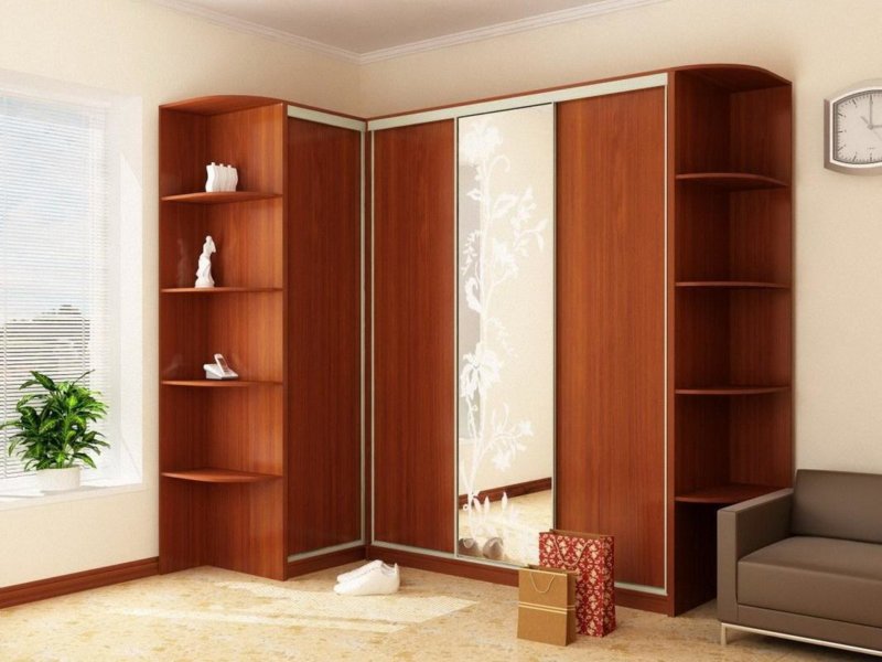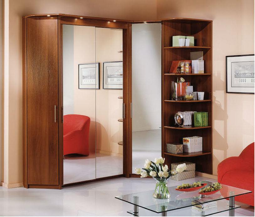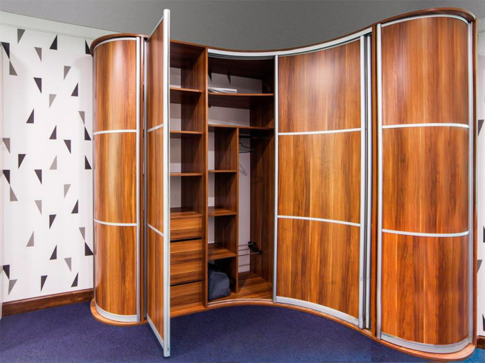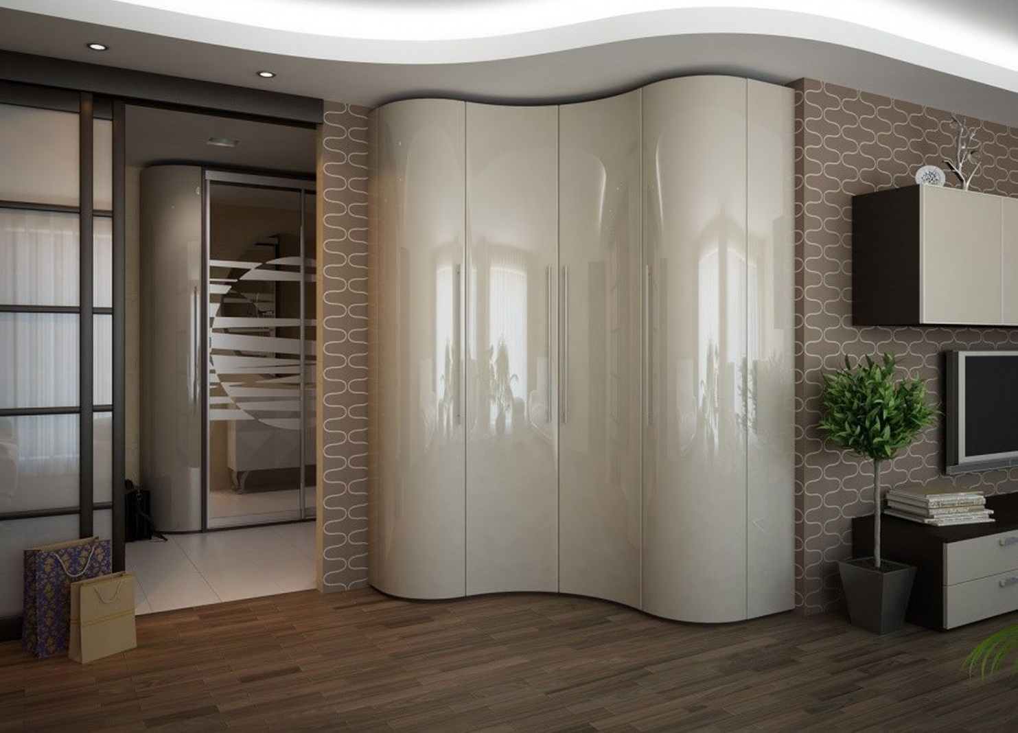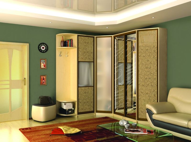La principale différence entre ce modèle de la garde-robe dans sa forme, ce qui vous permet de disposer ce meuble dans une petite pièce. De tels produits économisent plus de surface sans perdre de fonctionnalité. Une grande variété de formes vous permet de l'intégrer dans n'importe quel intérieur de pièce. Dans les pièces spacieuses, il complète parfaitement l'intérieur, vous permettant de remplir le coin.