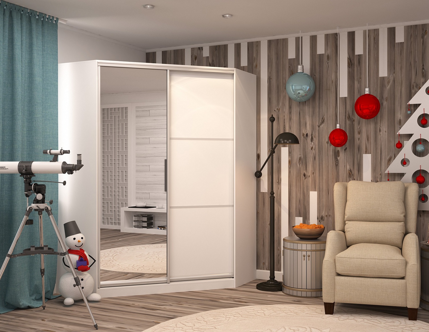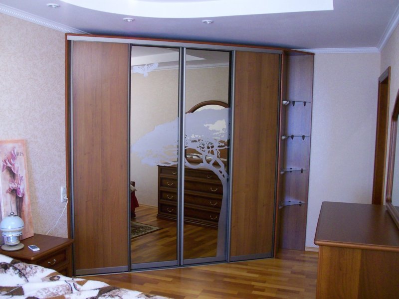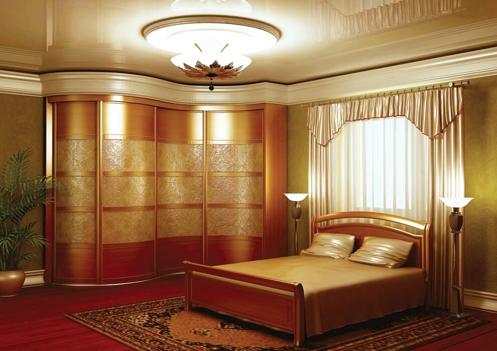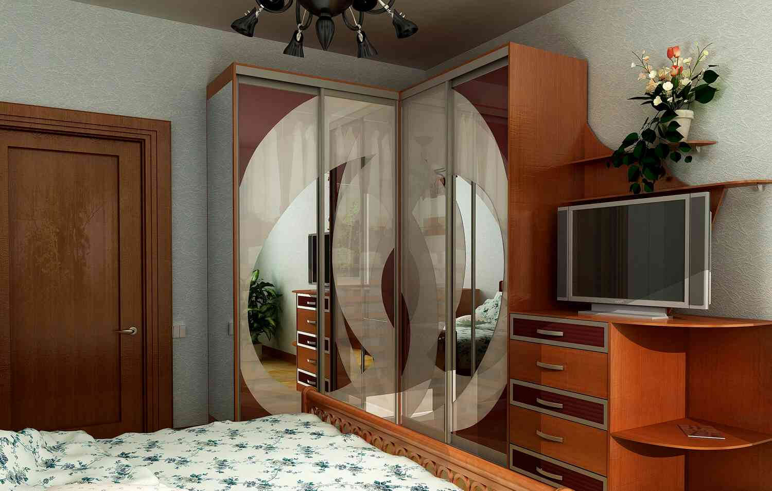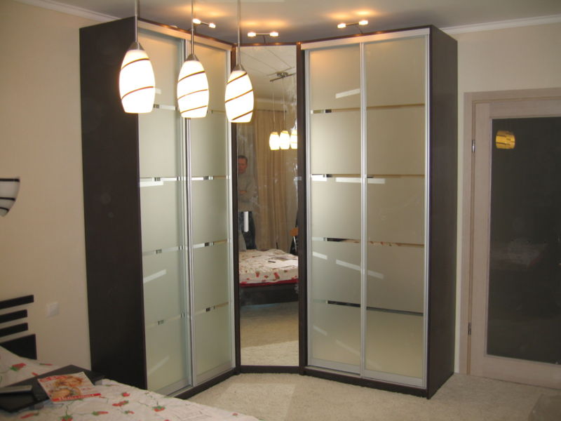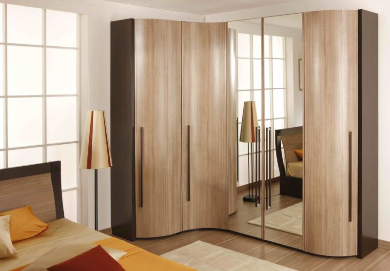 Pour la chambre à coucher, une armoire à la conception angulaire est excellente - des portes coulissantes réduiront l’espace requis. Lors du choix de la palette de couleurs des meubles, il convient de privilégier les modèles plus légers au ton de la décoration murale.