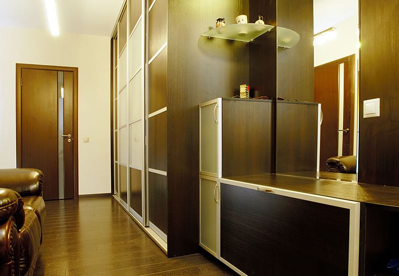 La façade du cabinet est son "visage". Ce sera lui qui rivera sur les yeux des invités. La façade doit être en harmonie avec l'intérieur du couloir, être raffinée et sophistiquée.