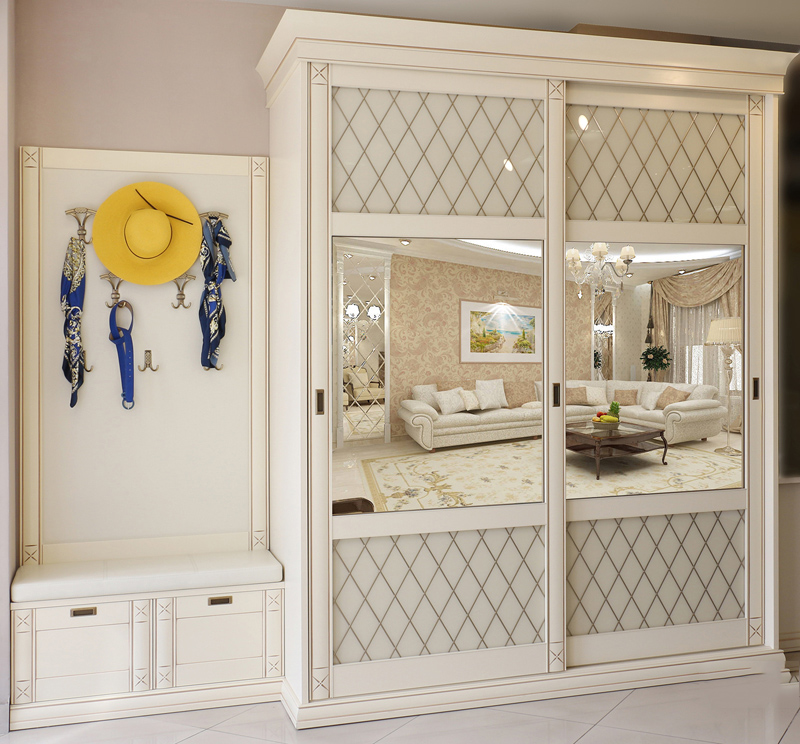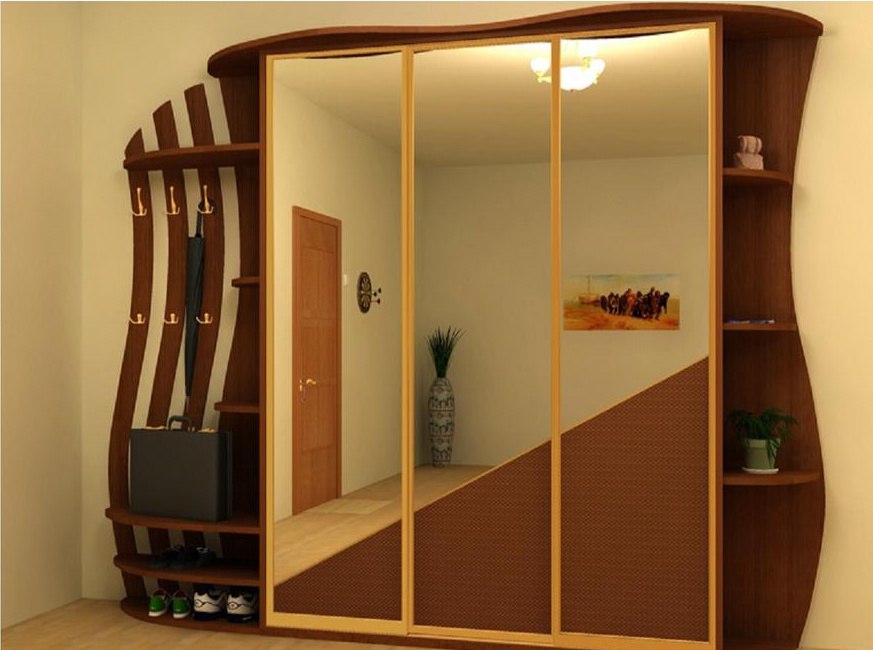 - Modèle. Le design du compartiment doit être choisi en fonction du style général de la pièce. Le modèle doit correspondre aux dimensions de la pièce, avoir une couleur harmonieuse. L'élément obligatoire du couloir est un miroir. Pour économiser de l'espace, vous pouvez commander des portes en miroir. C'est une solution populaire.