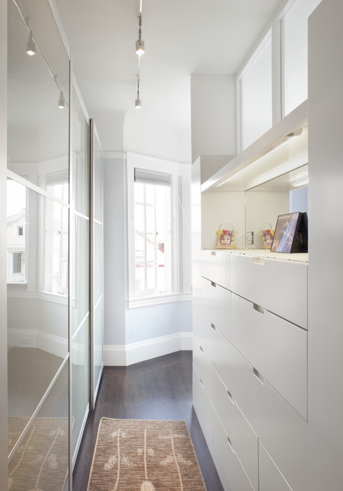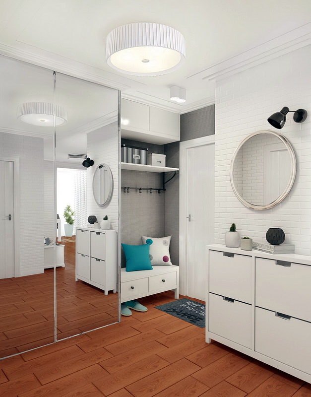 Les portes d'armoires à miroir rendront le couloir visuellement spacieux