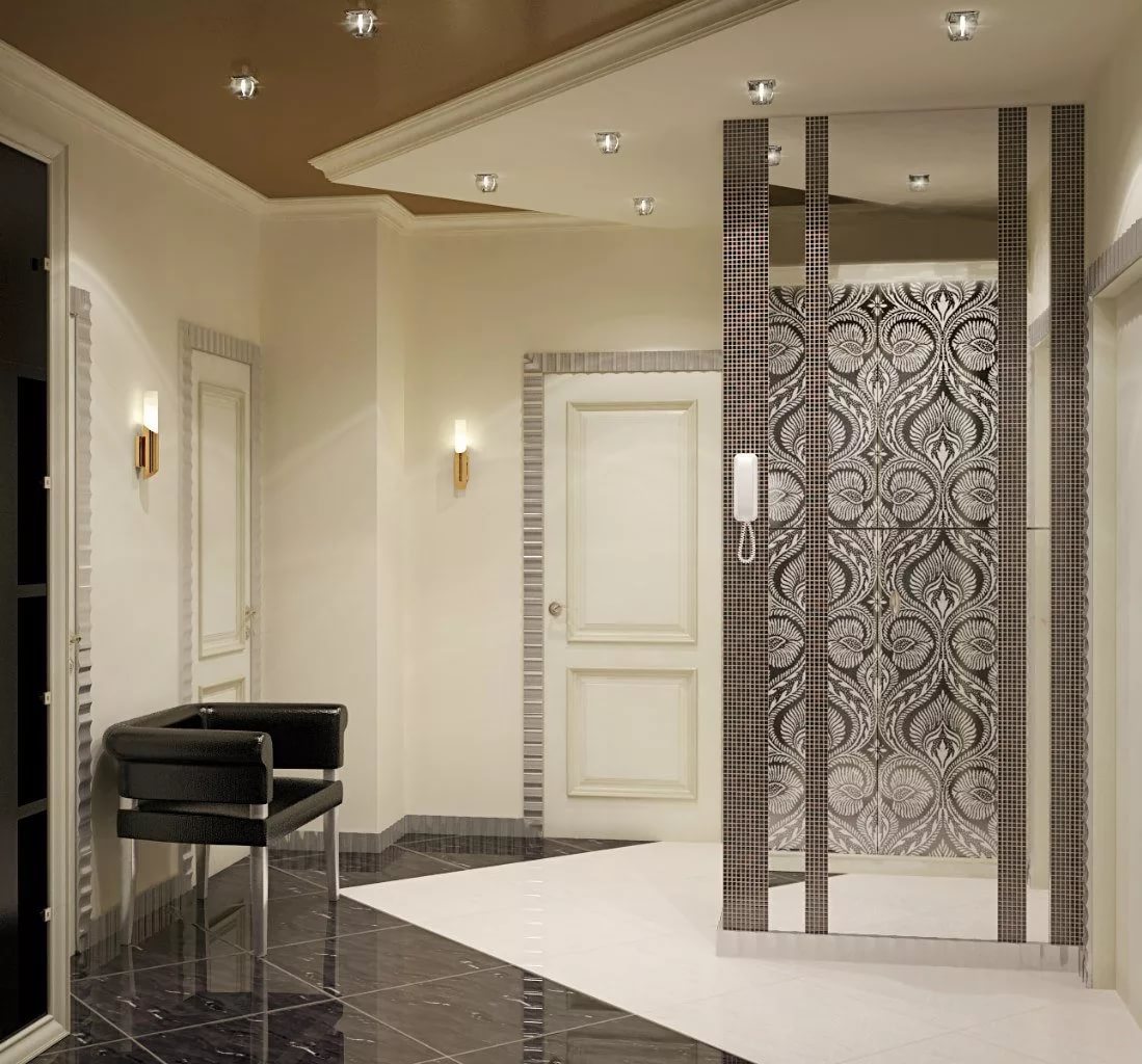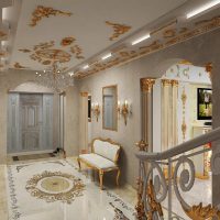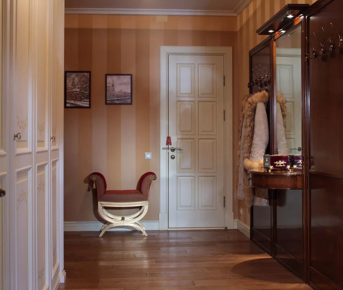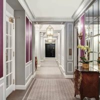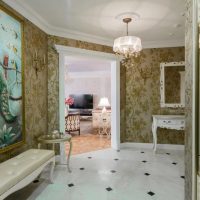 Cette direction est l'une de celles qui ne changent pas même après des décennies d'existence. Il n’a peur ni de la variabilité de la mode ni de l’influence des tendances. Il n’existe pas de temps et, bien sûr, peut convenir à la conception de votre couloir.Si vous souhaitez recréer ce style dans votre maison, optez pour des nuances dorées, bronze ou peut-être argentées d'accessoires pour poignées de porte et meubles. Optez également pour des nuances claires pour le papier peint. Utilisez du parquet au sol et un mobilier luxueux avec des branches monogrammes. L'installation de meubles vintage des siècles passés sera également appropriée.