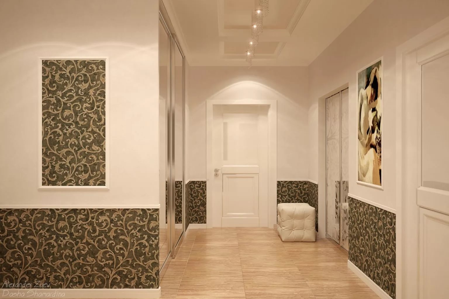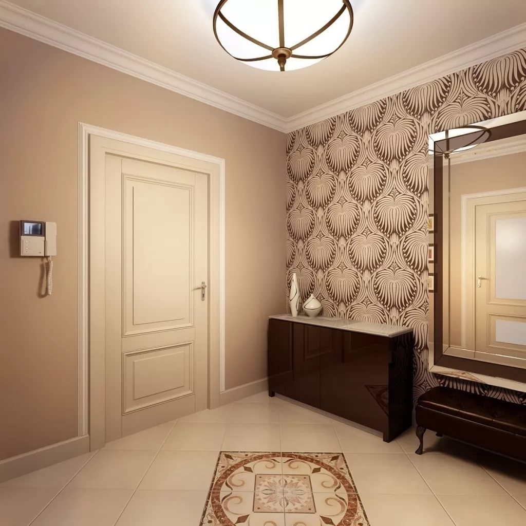 Conception de papier peint dans le couloir sous des portes lumineuses - exemples à l'intérieur