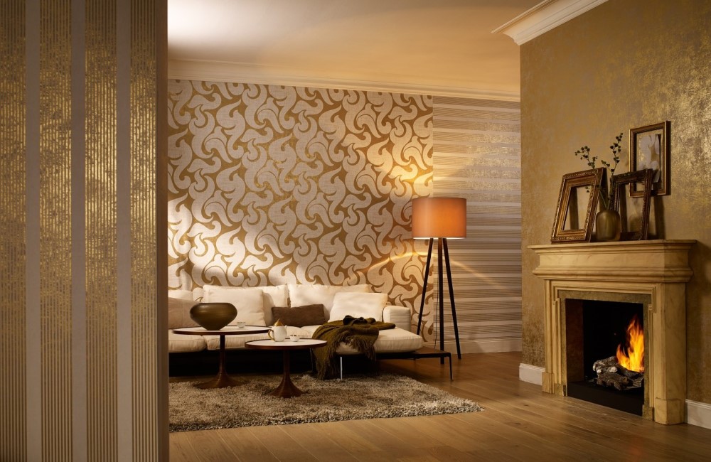 Une variété d'options de conception vous permet de concevoir des pièces avec du papier peint doré dans presque tous les styles