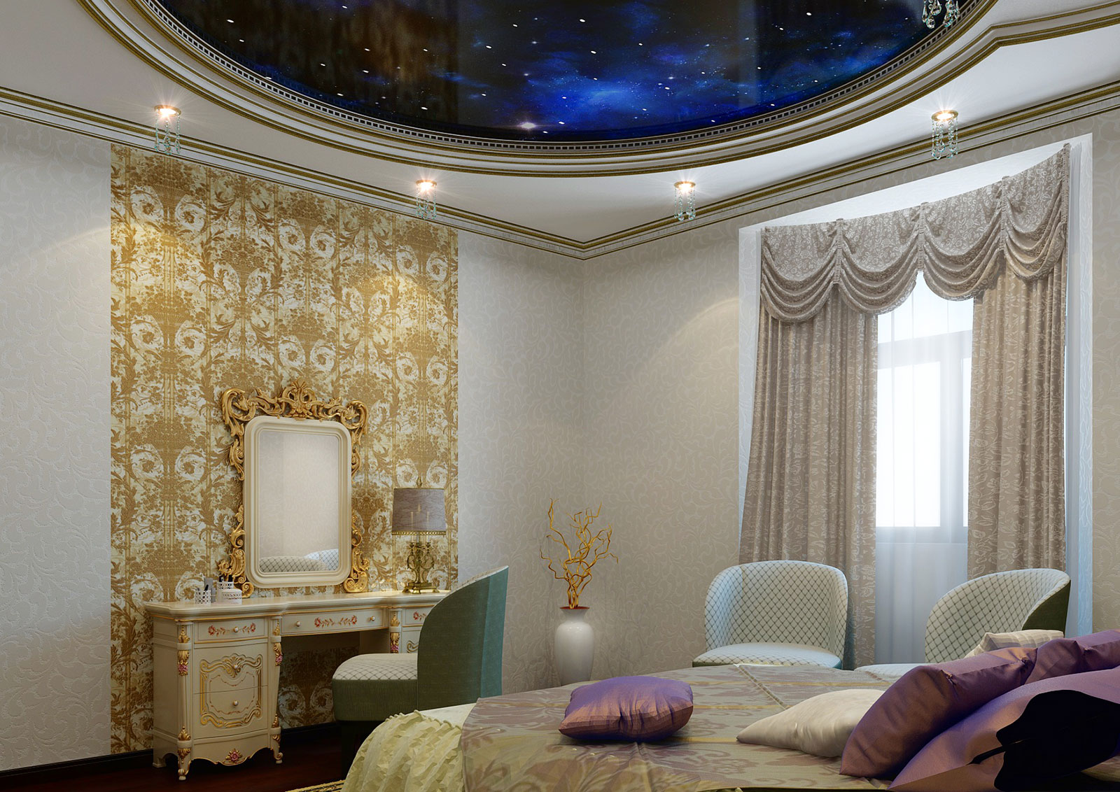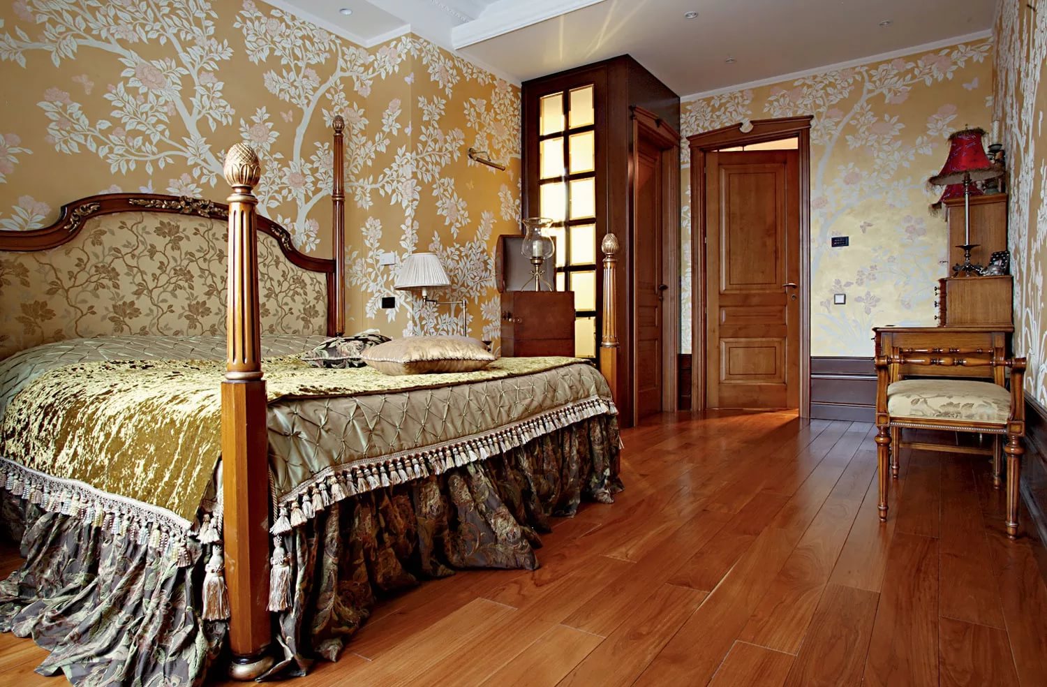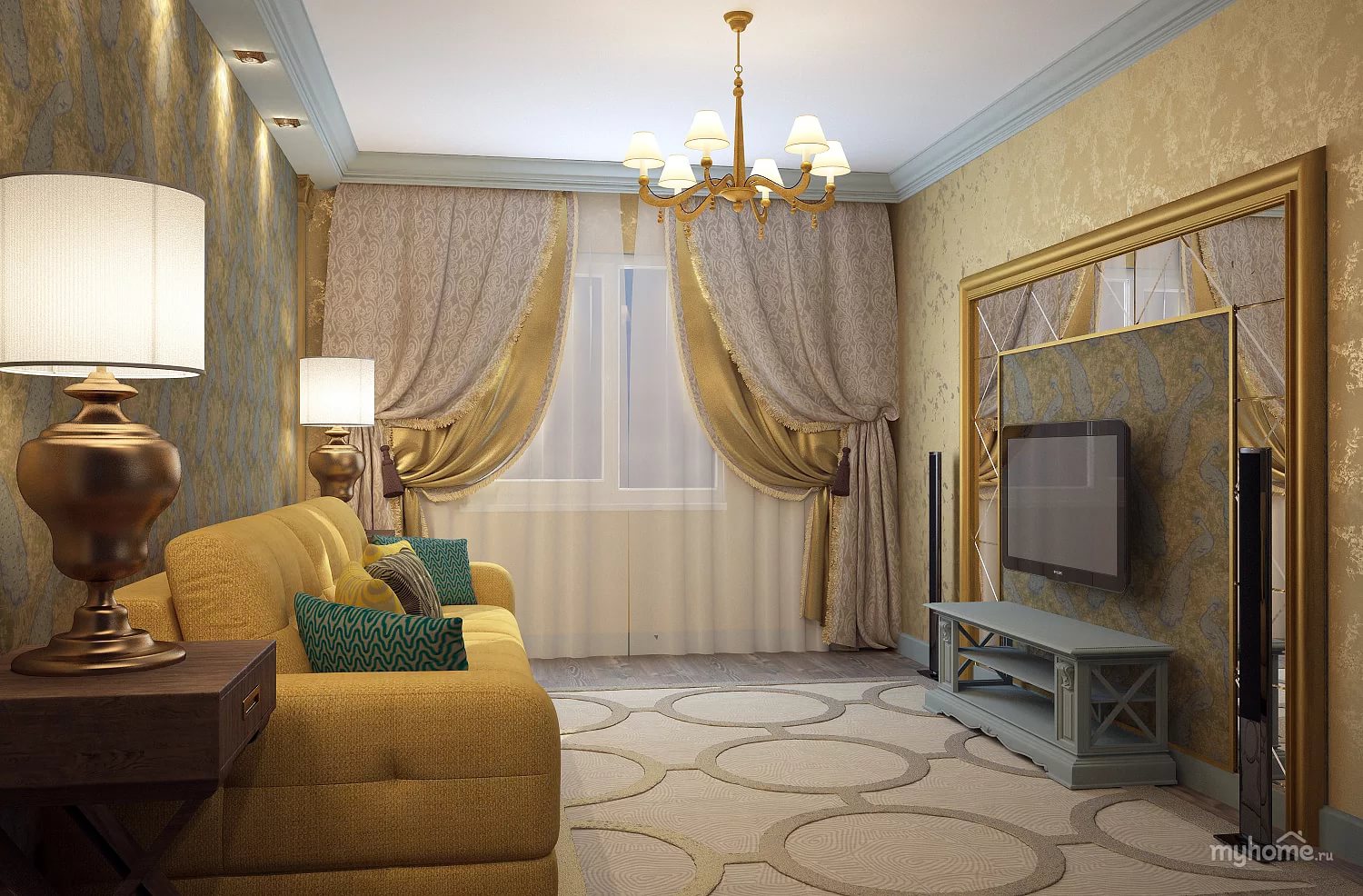 Les concepteurs proposent de nouvelles solutions à ceux qui aiment la couleur dorée à l’intérieur, en particulier quand elle est appropriée sur le plan stylistique. Il a été activement utilisé à l'époque baroque et rococo, ainsi que dans la stylistique orientale et le design éclectique au tournant du XXe siècle. Mais un tel intérieur nécessite un sens des proportions pour éviter la vulgarité et le pseudo-luxe, comme "style Barbie", "glamour" et "rouble".