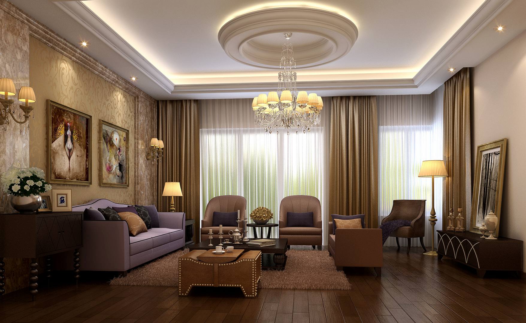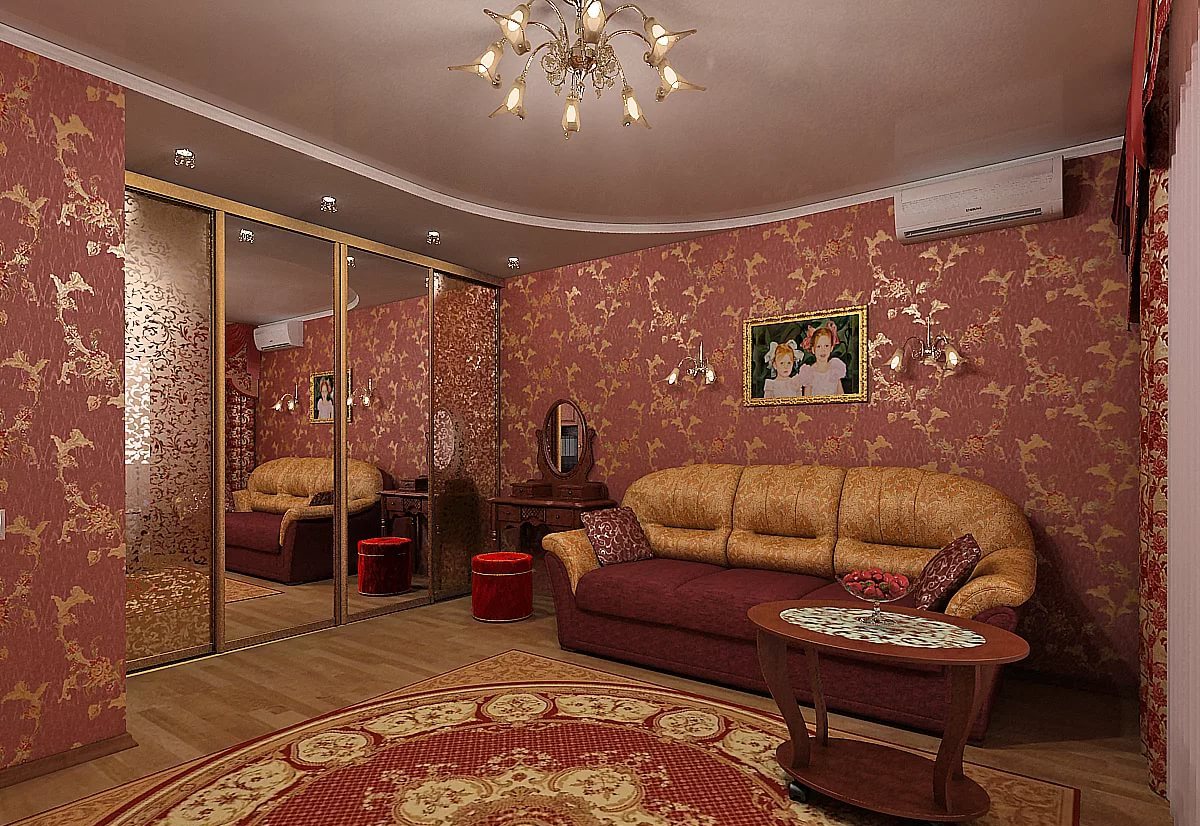Attention! L'excès de surfaces brillantes dans le salon a l'air trop pompeux, même le papier peint doré, même vulgaire, crée souvent un éblouissement, fatiguant la perception visuelle.
