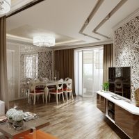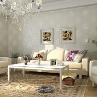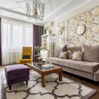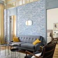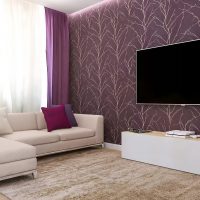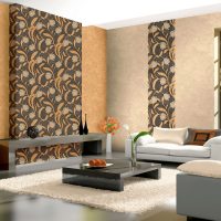 Une méthode d'accent simple consiste à utiliser des compagnons. L’idéal serait d’acheter du papier peint à un fabricant, afin que les caractéristiques de densité et de qualité ne diffèrent pas visuellement. Les méthodes combinées de papier peint et de conception de salles de séjour 2019 sont présentées sur la photo. Les toiles imprimées s’appliquent mieux sur un seul mur et pour le reste, choisissez des couleurs unies. L'impression peut être des fleurs voisines au papier peint ordinaire, ou du contraste. Un mur complètement collé avec une impression ressemblera à une énorme affiche. Il est préférable de coller un papier peint de taille fixe et de découper un cadre autour des bords. Il existe plusieurs méthodes de combinaison: