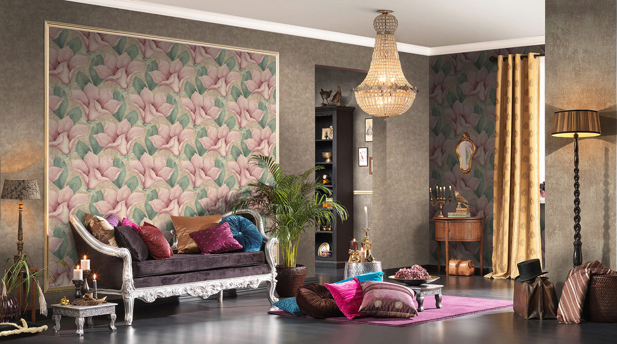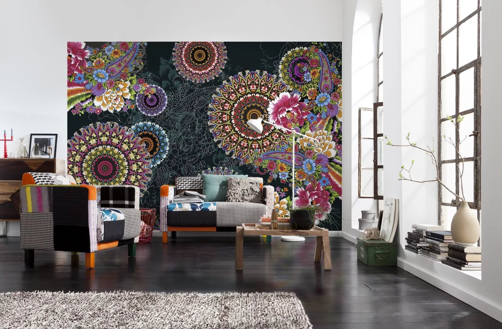 Pour un design maximaliste, il est préférable de prendre des fonds d'écran avec de grandes couleurs et des images ethniques.
