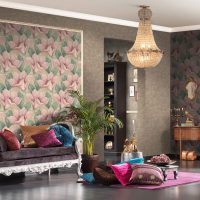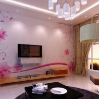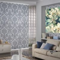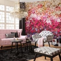 Les toiles imprimées s’appliquent mieux sur un seul mur et pour le reste, choisissez des couleurs unies. L'impression peut être des fleurs voisines au papier peint ordinaire, ou du contraste.