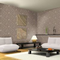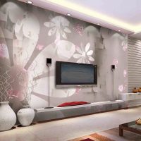 Aujourd'hui, peu de gens peuvent être surpris par une image avec un effet 3D. Ces papiers peints se distinguent par leur résistance, leur durabilité, leur respect de l'environnement et leur coût élevé. Il y a des peintures fluorescentes avec rétro-éclairage. Pour la salle, il est préférable de choisir des options avec des figures volumétriques géométriques qui composent des compositions complexes. Cependant, les papiers peints 3D ne sont utilisés que comme décor et comme finition inhabituelle. Par conséquent, il est conseillé de les coller avec un seul mur dans la pièce.