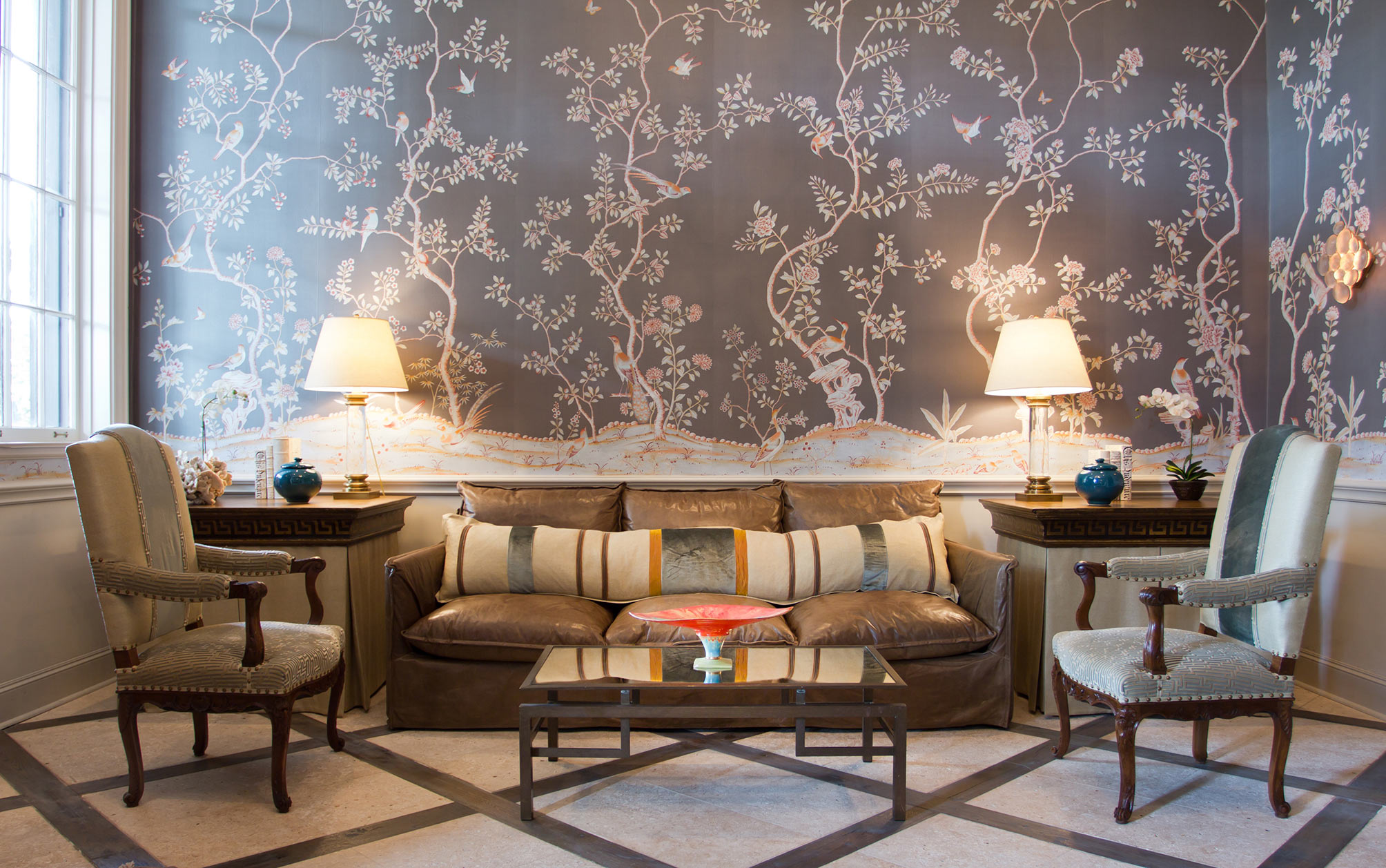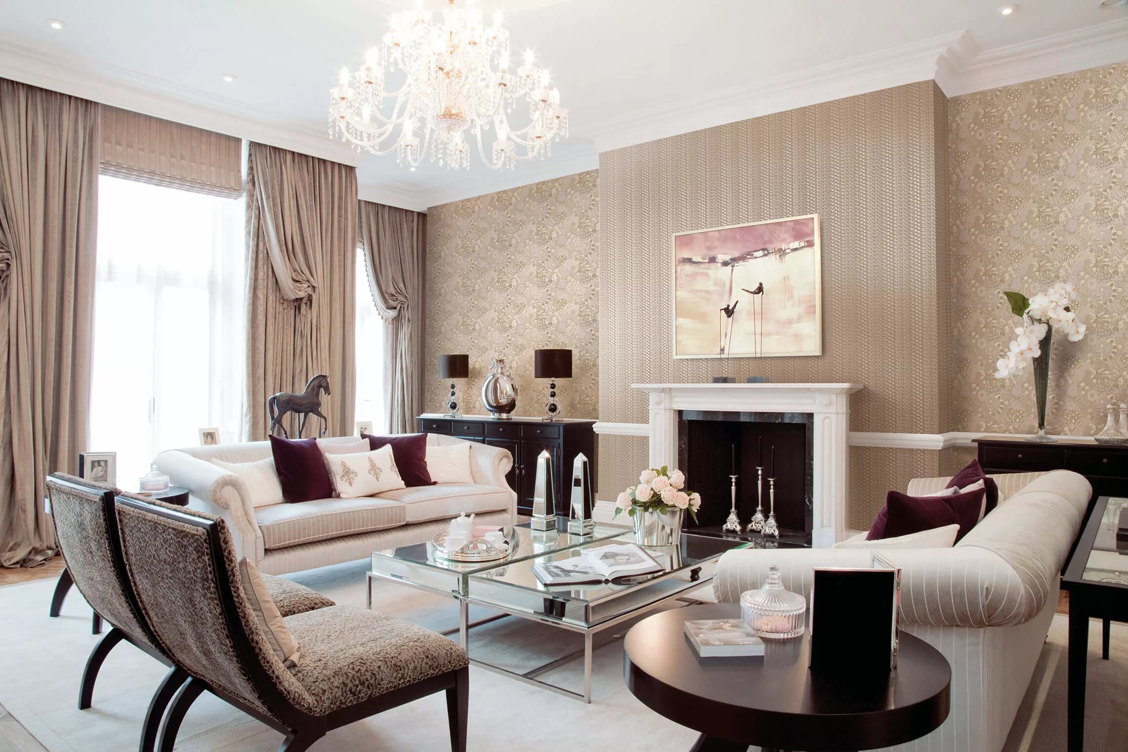 Les papiers peints de style néoclassique sont élégants et décorent le salon