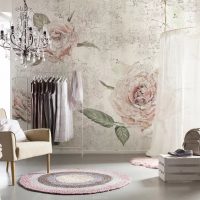 Les fleurs peuvent être complètement différentes - des marguerites mignonnes aux orchidées et roses enchanteresses. Vous devez les choisir uniquement par préférence personnelle. La bande verticale sur les murs ne sera pas non plus démodée en 2019.