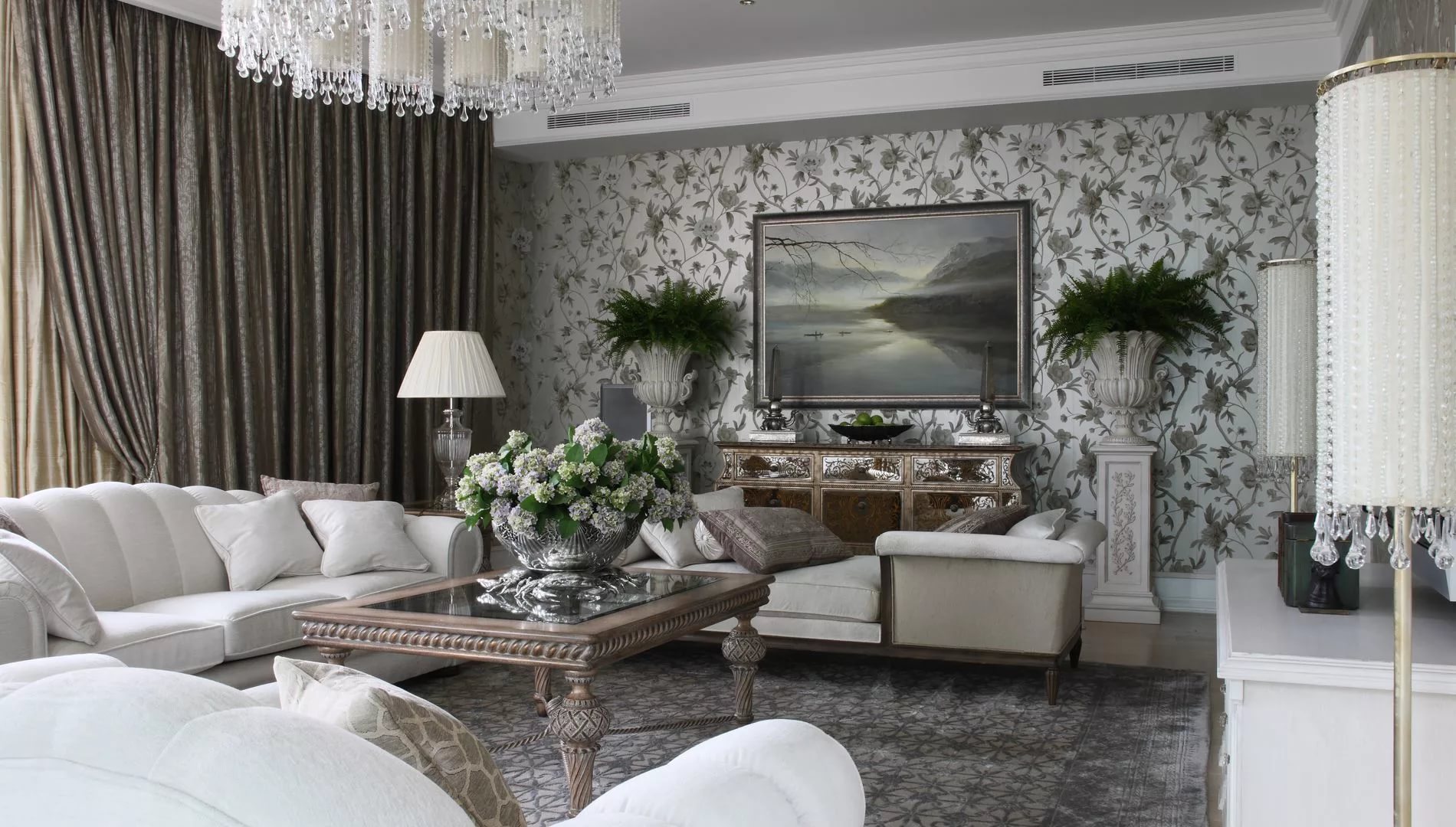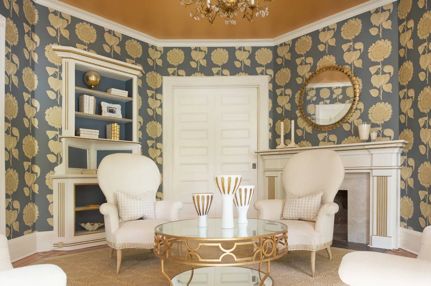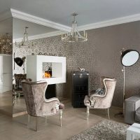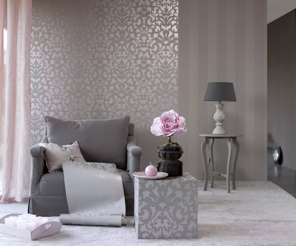 Si vous souhaitez créer un intérieur élégant, la meilleure option serait un papier peint texturé avec des éléments argentés.