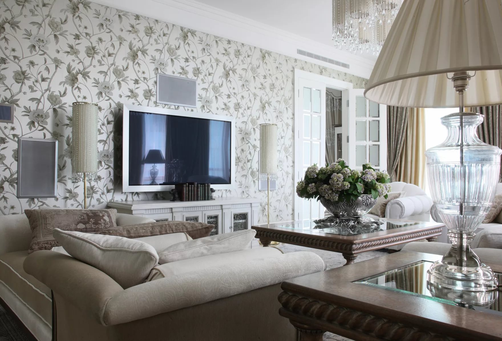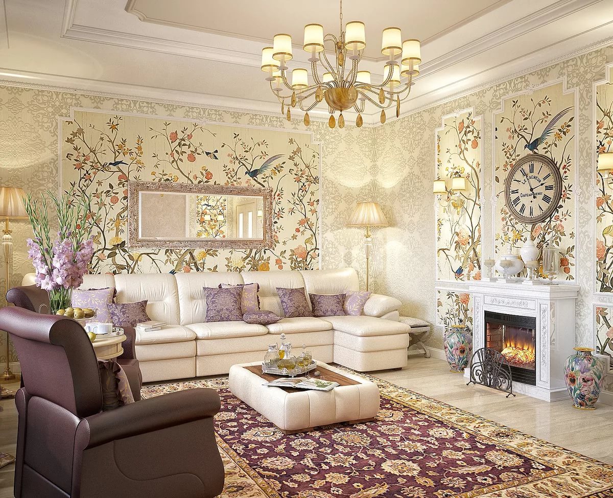 Papier peint dans le salon dans différents styles