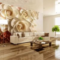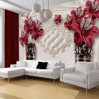 Avec le papier peint 3D, vous devez être aussi prudent que possible. Mais si le salon n'est pas trop petit, vous pouvez coller les peintures murales sur un seul des murs.