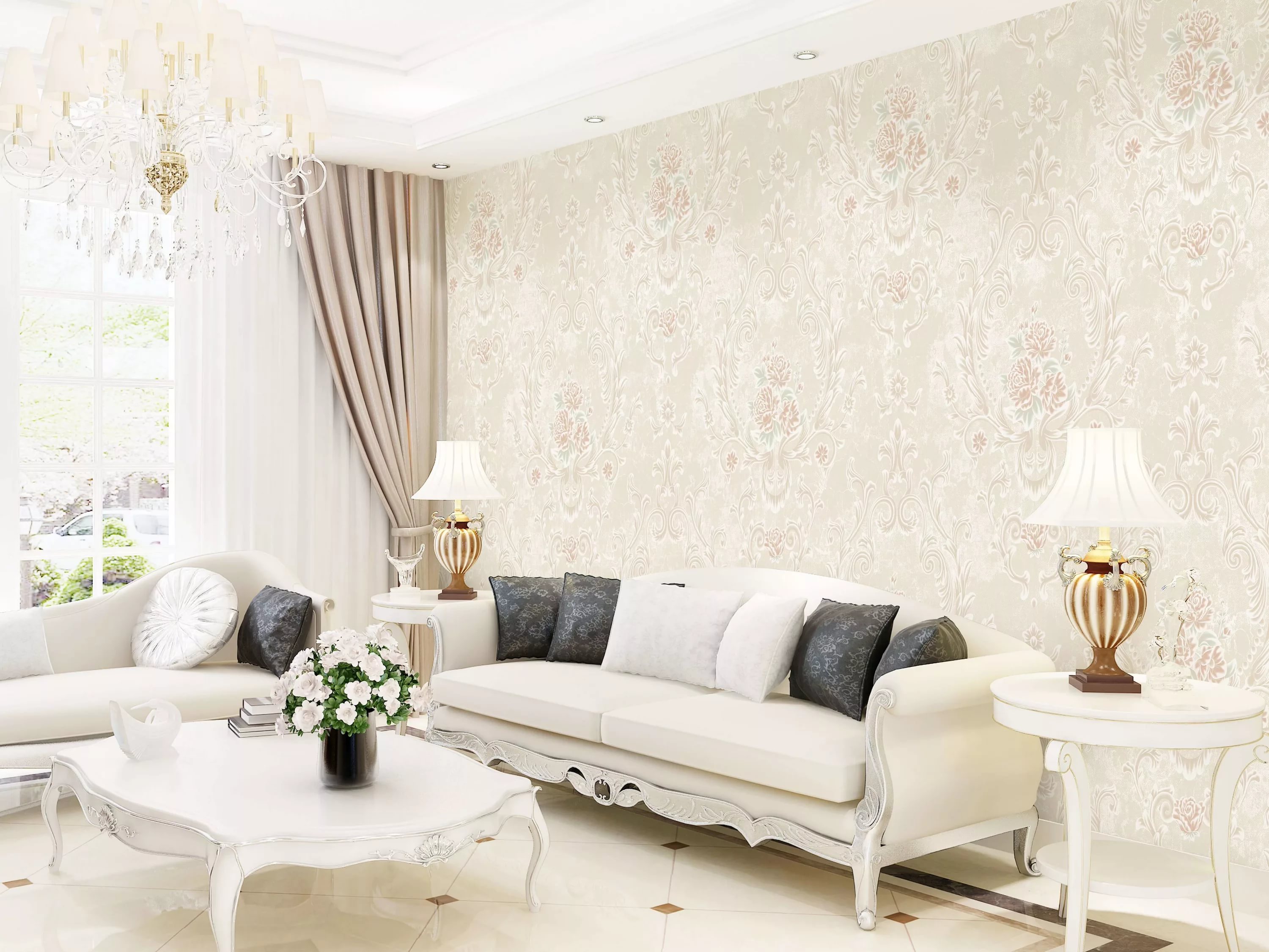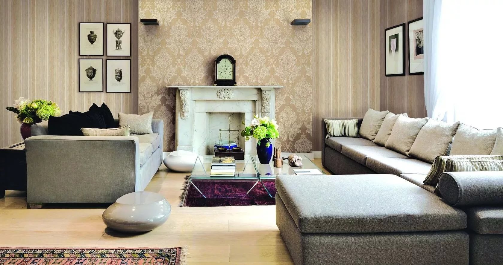 De tels papiers peints conviennent bien à une pièce décorée dans un style classique. Ils ont l'air élégant et ajoutent le luxe nécessaire à l'intérieur.