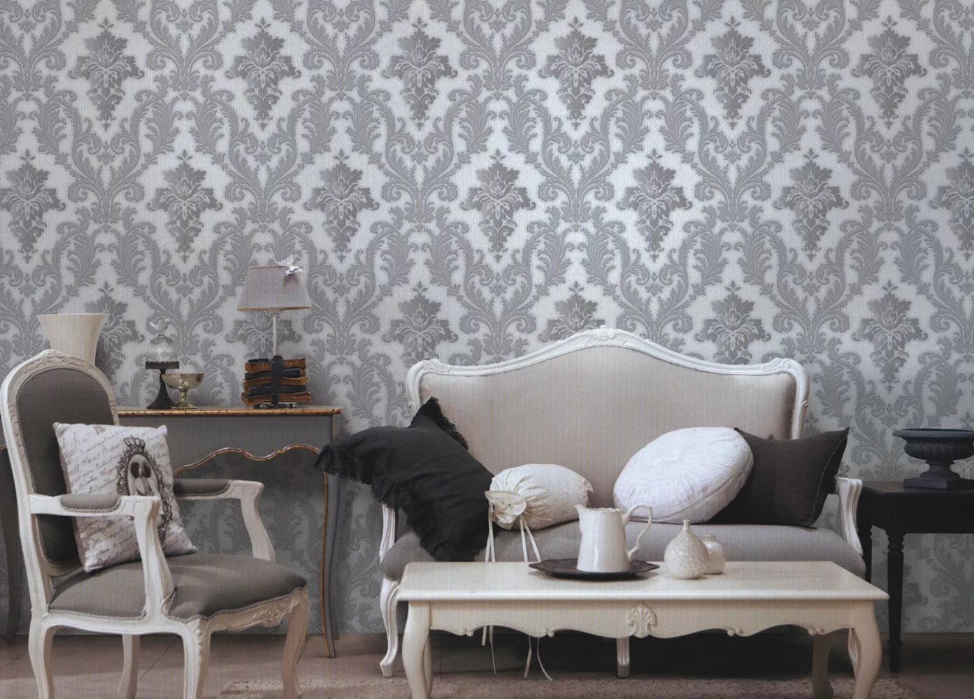 En 2019, vous trouverez parmi les nouveaux produits des matériaux néoclassiques. Si vous souhaitez créer un intérieur élégant, la meilleure option serait un papier peint texturé avec des éléments argentés.