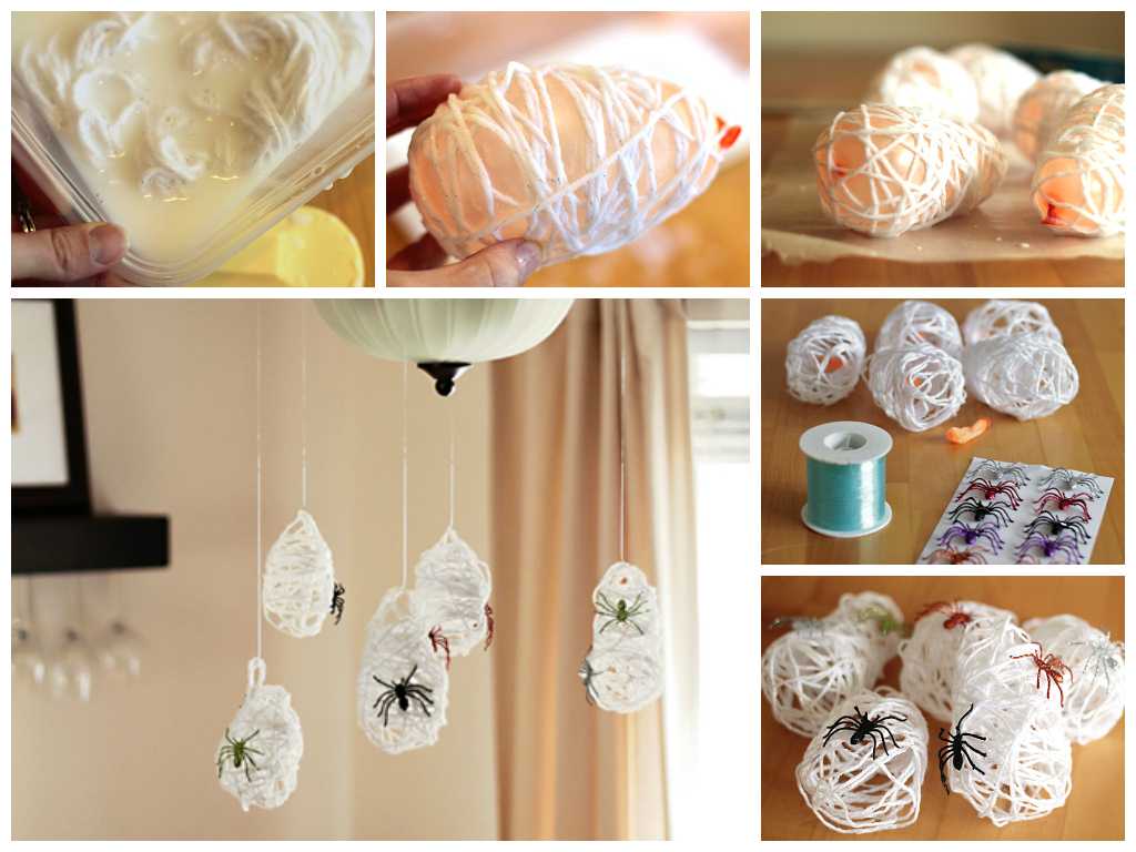 Another easy-to-use decor idea is to create a chandelier from a thick thread or yarn. From the materials for such a handmade you will need: