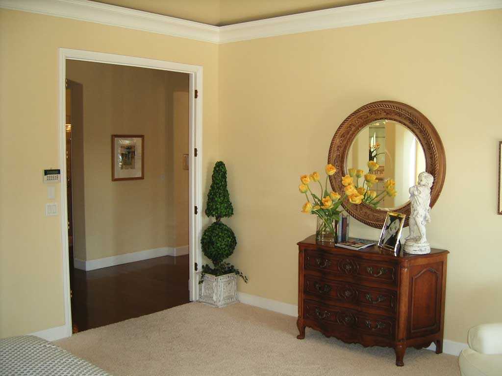 The decor traditional for a bedroom is flowers, pictures, panels, mirrors (on a wall or on a stand). It is important that all objects are in harmony, creating coziness and a special intimate atmosphere. An exhibition of paintings in the style of "nude" is appropriate.