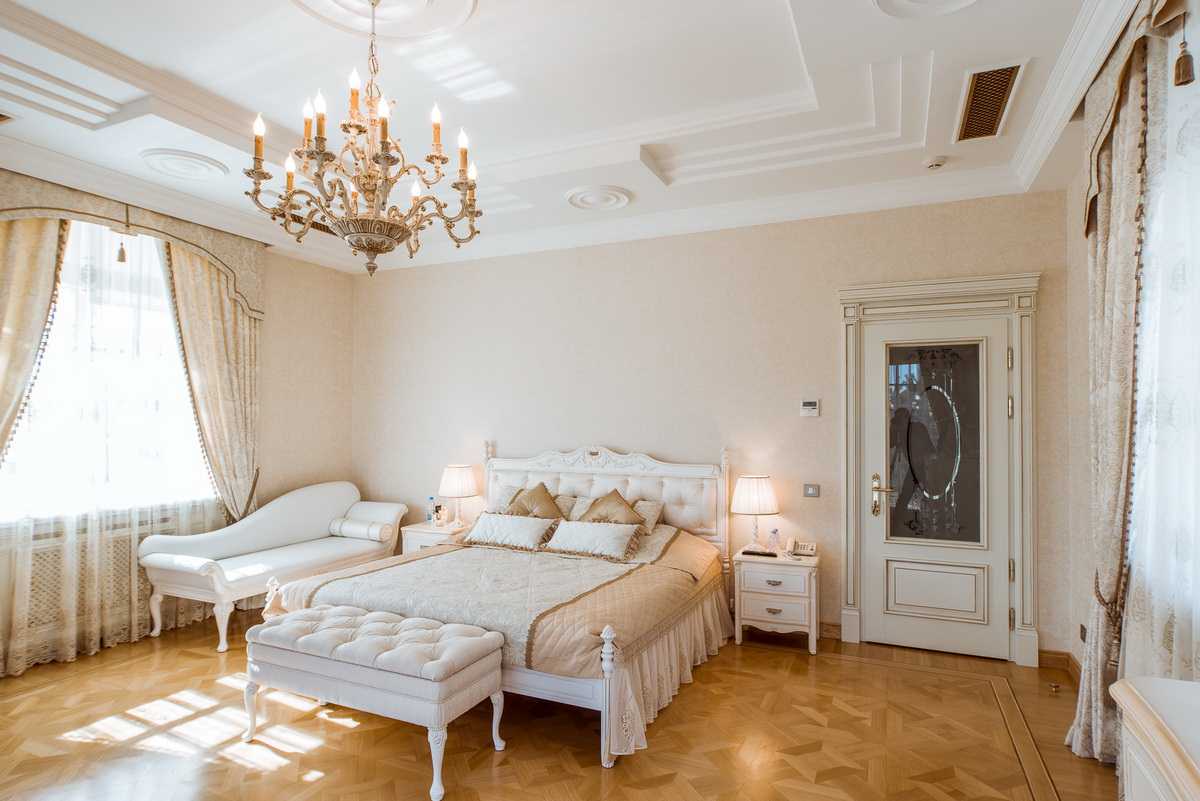 For bedroom decor, fragmentary textile draperies are appropriate. If you decide to strengthen textile draperies on a large surface of the wall, it is preferable to a canvas of milky, light beige color.