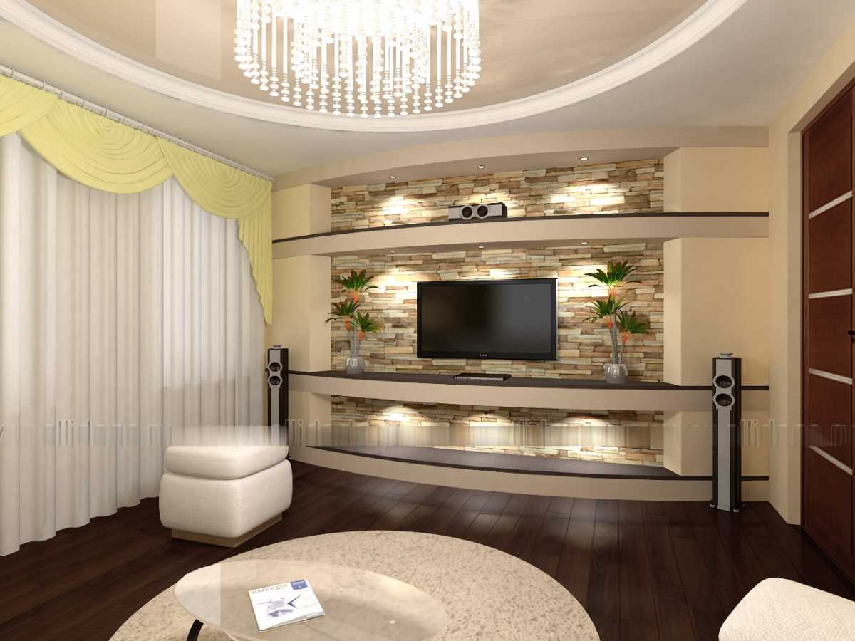 The right decision would be to finish the walls of the living room with decorative stone