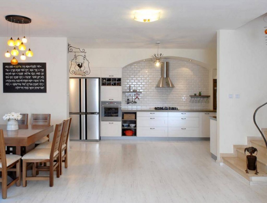 Make the entire space of the house from the laminate. Thresholds here will not be appropriate. Create a monolithic carpet. This method will allow you to prepare breakfast for your loved one in bed, and deliver it on a beautiful wheelbarrow-tray.