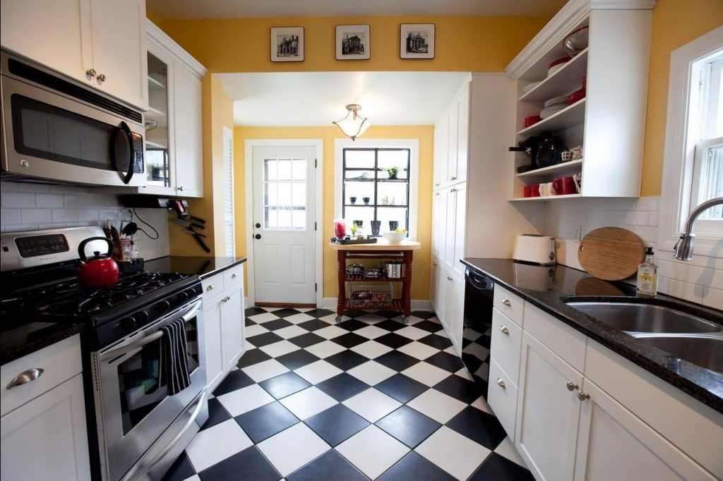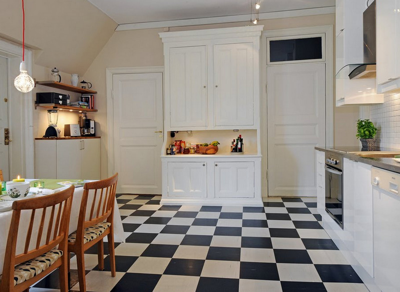 Matte ceramic tiles on the kitchen floor