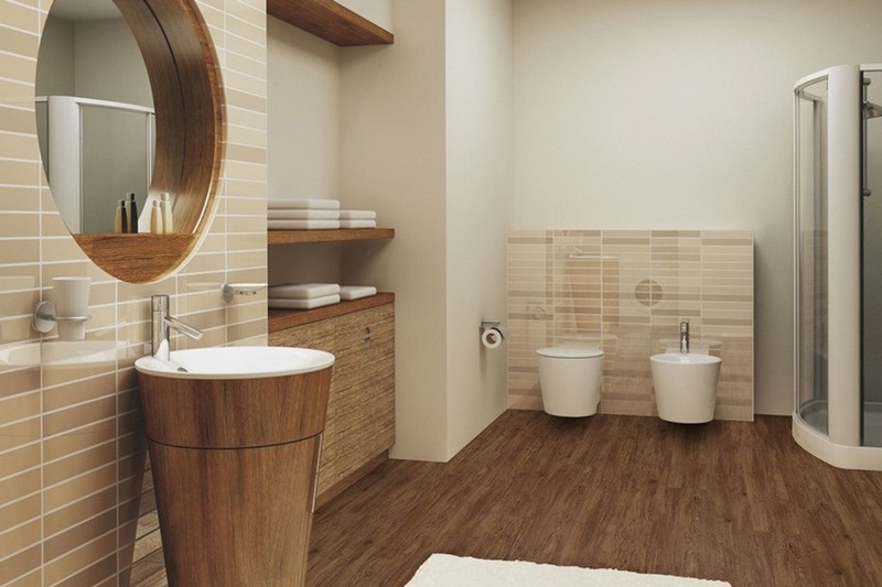 Ceramic flooring in the bathroom of a wooden house