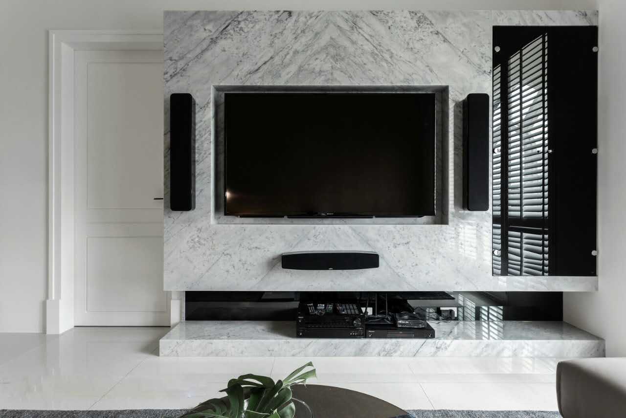 Mysterious stone grotto - the original frame of the head of the bed or a niche under the figurine. Flexible stone in the interior of a modern living room looks inimitable.