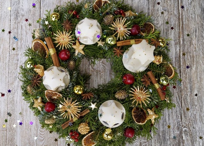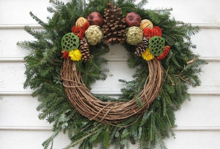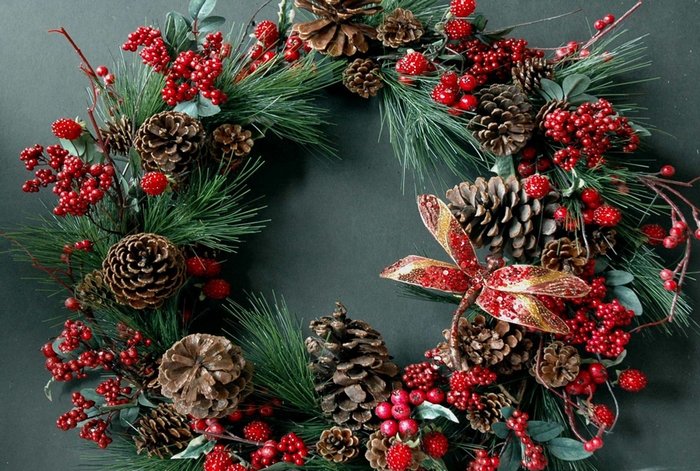You can decorate the house on New Year's holidays with the help of a Christmas wreath.