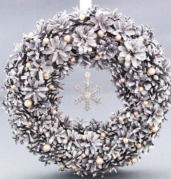 New Year’s wreaths on the door made of branches with cones, today are quite common and every year the number of such decorations only increases.
