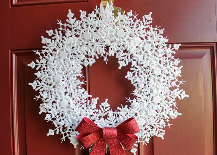 - The crafts can be sprinkled with decorative snow and attached to the door with hooks, glue or carnations.