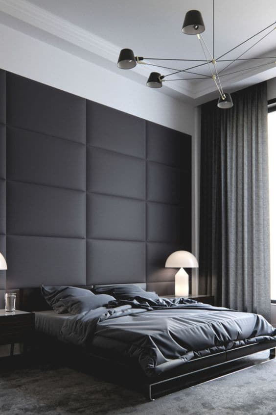An interesting solution is a soft panel like headboard upholstery. This decoration is easy to make from plywood, textile and foam.