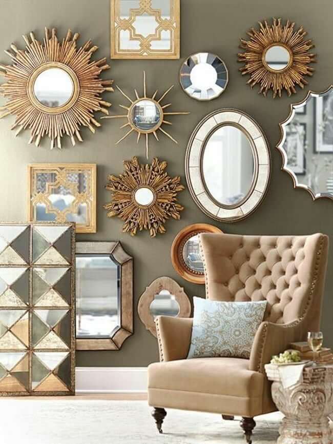 - Mirrors are another beautiful element of decor. With their help, you can add light, lightness to the room. Square, rectangular or round, straight, curved - you choose.
