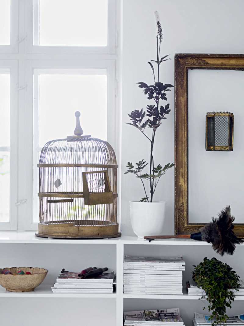 You can create a patina effect, this will enhance the decorativeness of a stylish piece of English interior, emphasize the vintage stylization of the house. Complete the cage with lighting - a small enough LED “twig”, and a romantic atmosphere is created.