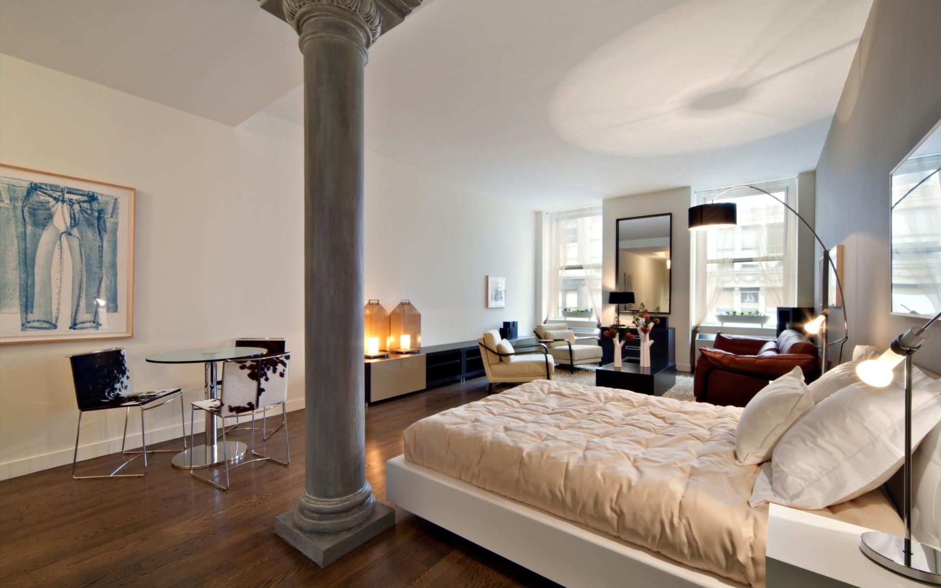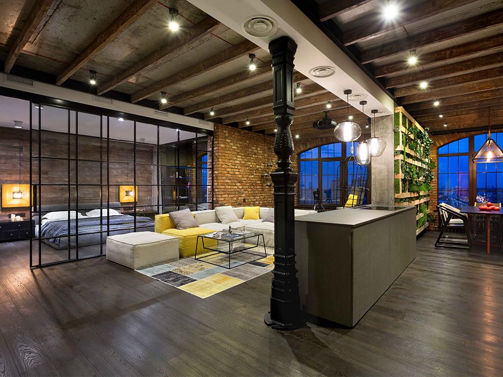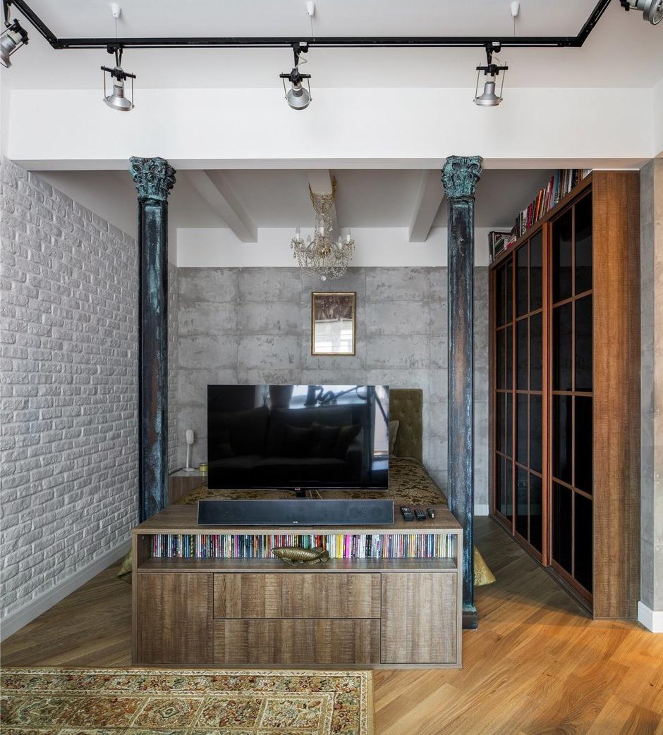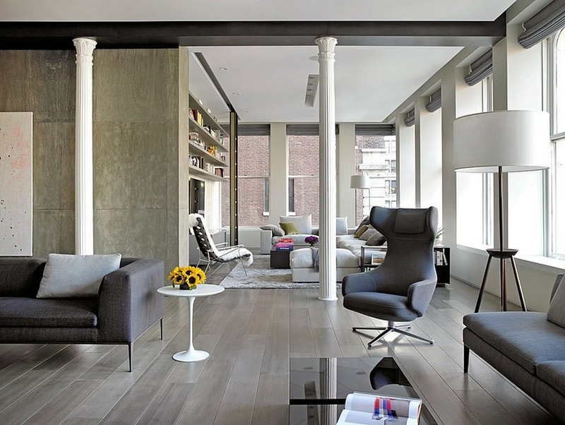 Columns in a modern interior perfectly combine functionality and stylistic relevance. Loft style involves decorating a room like an old, abandoned factory warehouse. In this case, decorative columns made of concrete or brick are suitable. Additional elements are not required, since the loft implies some minimalism in its manifestation.