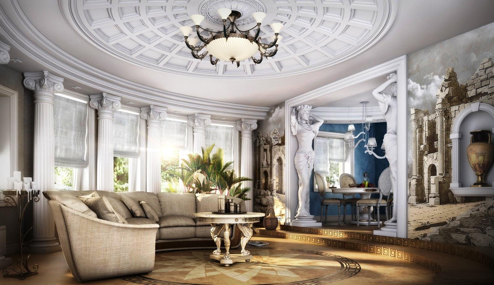 The columns in the interior are a sign of greatness and wealth of the family. Now there are a lot of private houses using decorative columns in the design. But basically - it’s not as remarkable as in the “old days”, ordinary brick plastered parts of the walls. Undoubtedly, even the installation of such elements of home decoration will bring classic elegance and create an atmosphere of comfort. But what happens if you mentally imagine the interior of the living room with columns of a Doric order? The capital inherent in this warrant of classical architecture with its stylistic manners will breathe in an indescribable atmosphere into the home.