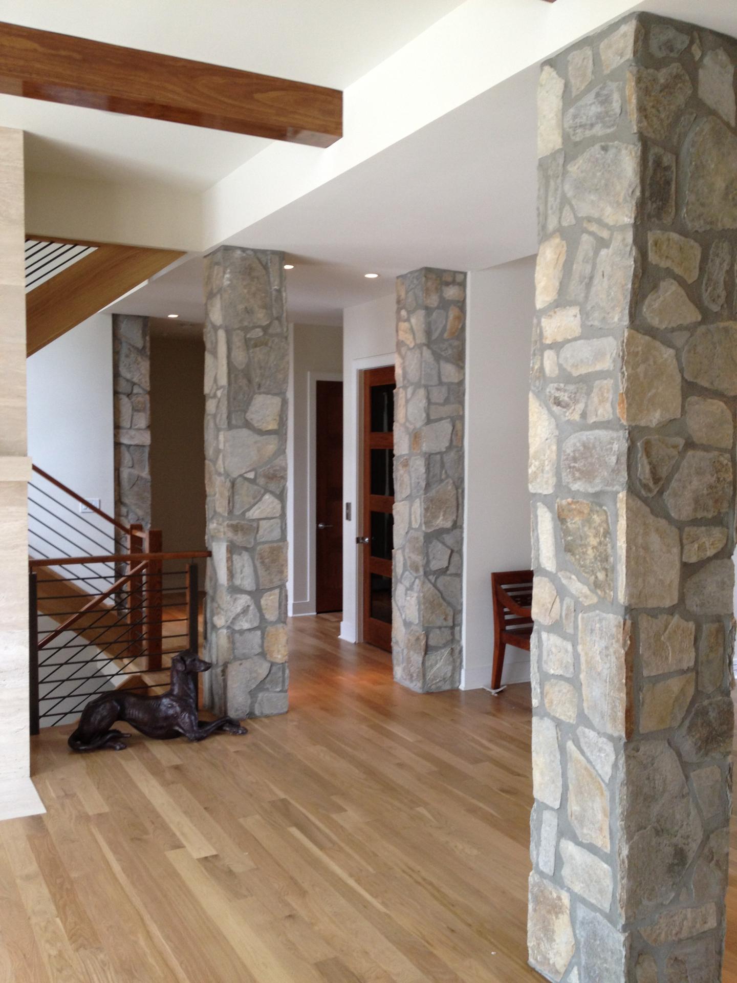 Combined column construction options are also possible in the interior of the house. Metal goes well with wood and stone.