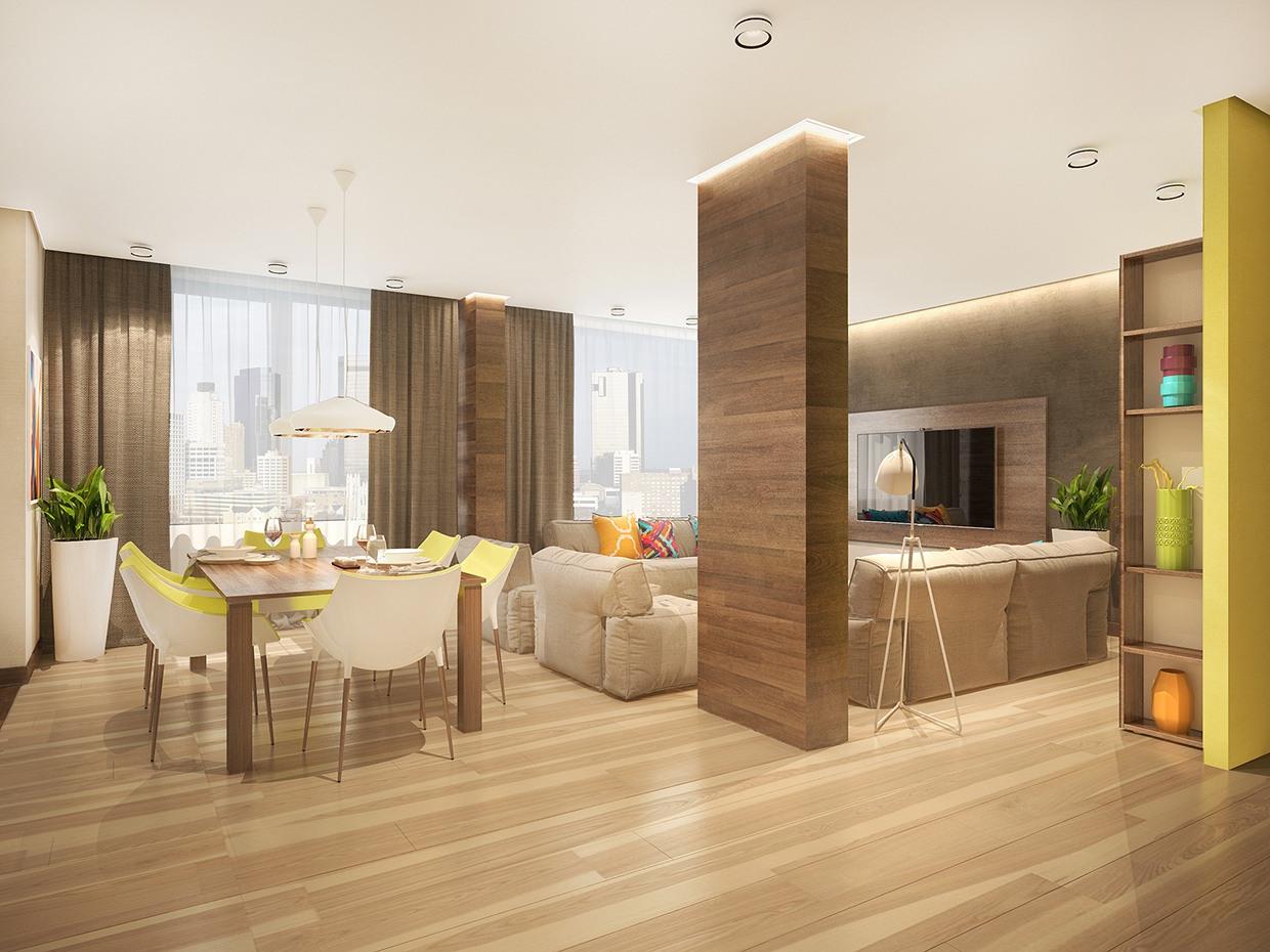 Studios, large halls and ordinary rooms can be zoned in columns.