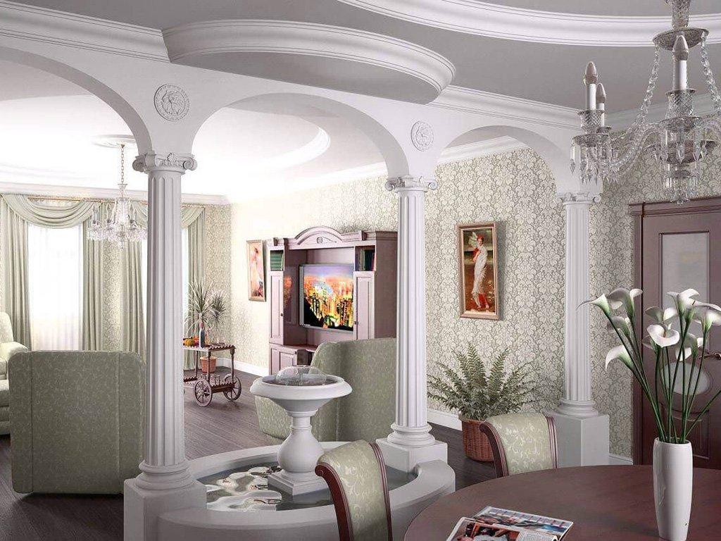 Columns in the interior of a modern home are considered a sign of good taste and high material status of the owner of the house