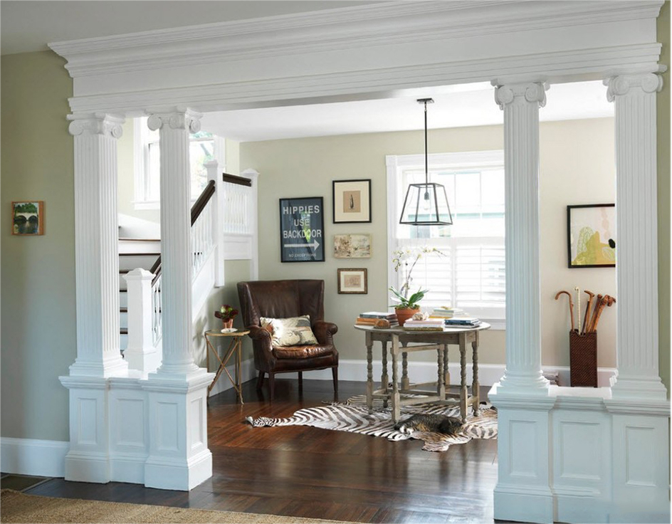 The arrangement of columns is a modern trend in organizing a beautiful and richly furnished living space in the modern world. And thanks to the use of inexpensive materials, ancient antique columns are now available to anyone.