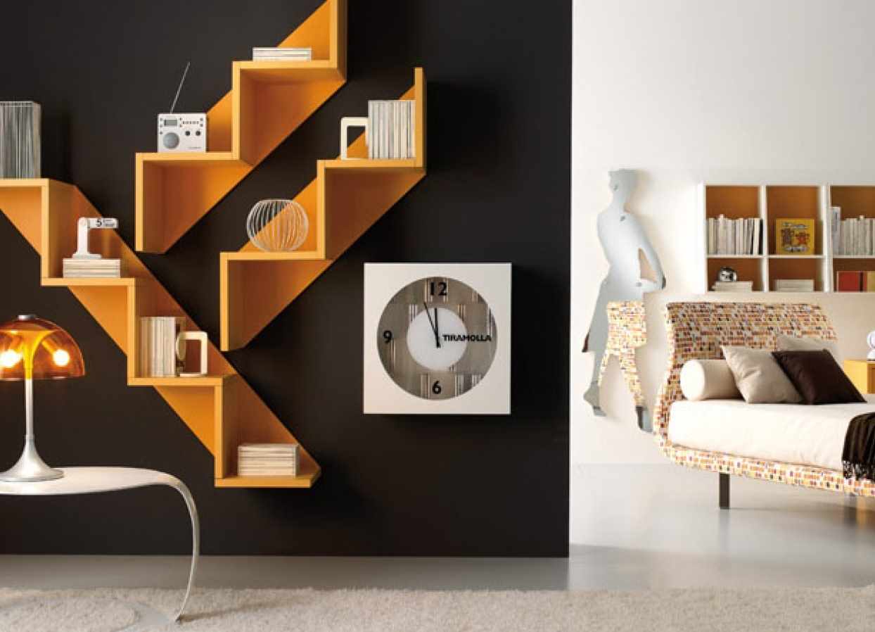 Shelves, made in an unusual form, bring into the interior a certain mystery, uniqueness, among which are products in the form of: